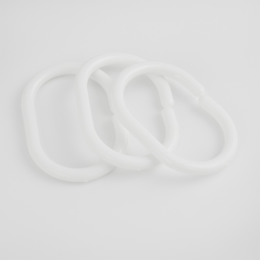 Кольца для штор и карнизов белые в ванную, пластиковые, упаковка 12 штук. Вес - 0,050 кг, объем - 0,00030 м3.