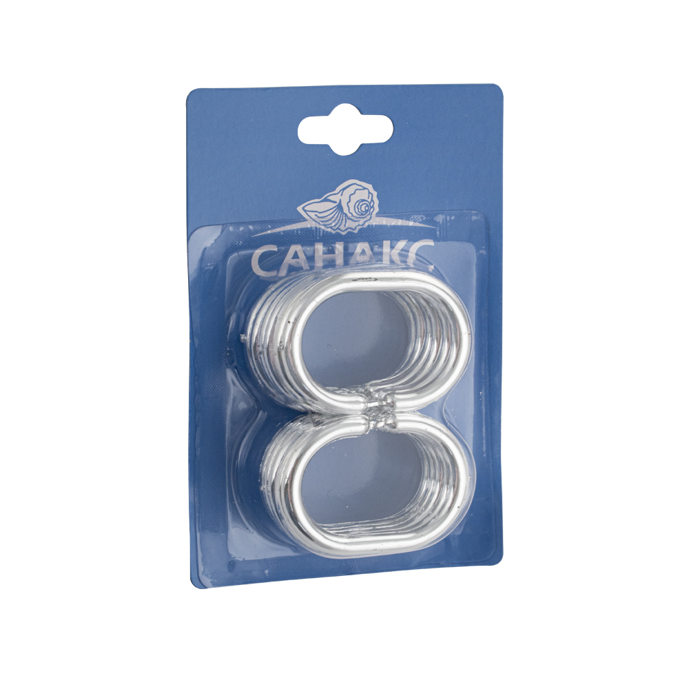 Кольца для штор и карнизов хромированные в ванную, пластиковые, упаковка 12 штук. Вес - 0,050 кг, объем - 0,00030 м3.