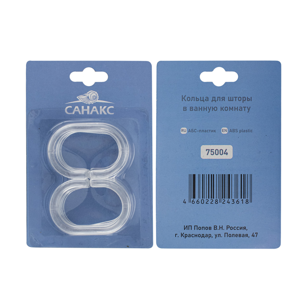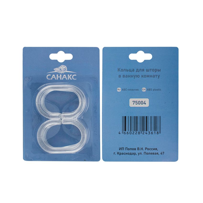 Кольца для штор и карнизов ПРОЗРАЧНЫЕ в ванную, пластиковые - упаковка / 12 штук. Вес - 0,100 кг, объем - 0,00004 м3.