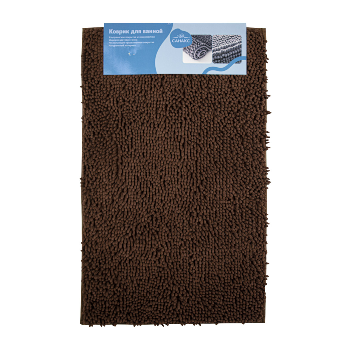 Коврик в ванную, одинарный с антискользящим покрытием однотонный, коричневый, высота ворса 20 мм. Мягкий, плотный и приятный на ощупь. Стирать коврик можно в стиральной машине при 30-40 градусах без хлора. Состав коврика - полиэстер на качественной латексной основе, быстро сохнет и не накапливает влагу, износостойкий. Коврик универсального назначения: для ванны, для гостинной, на кухню и т. д. Габаритные размеры: высота 800 мм, ширина 500 мм. Вес - 0,580 кг, объём - 0,00697 м3