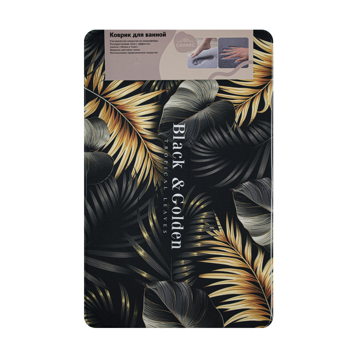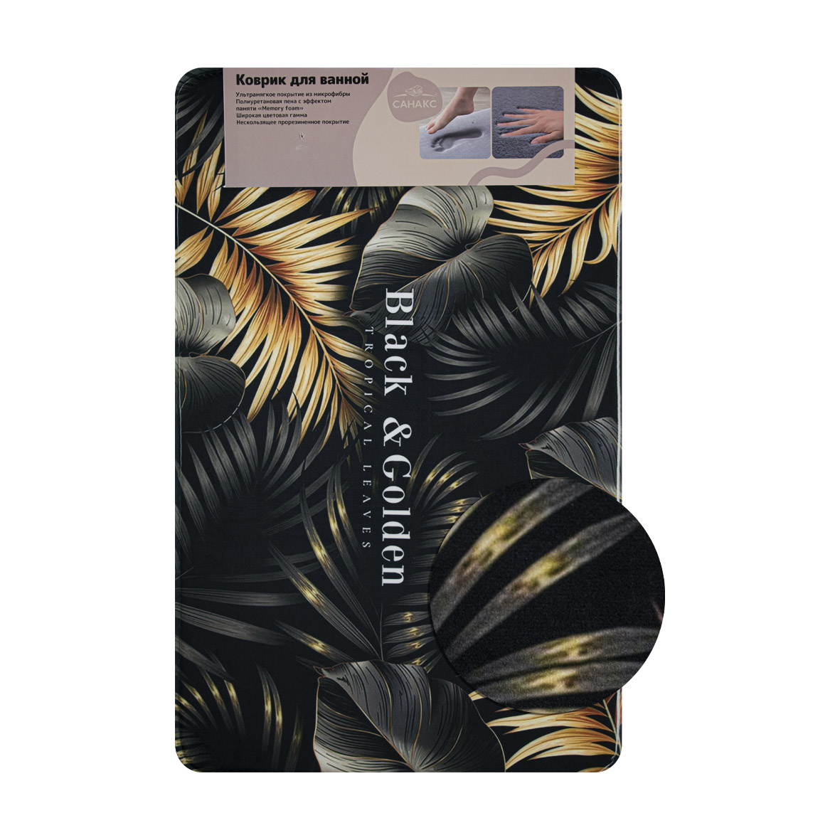 Коврик в ванную ПАМЯТЬ - эффект восстановления, одинарный, дизайнерский - черный+золото 50 х 80 см