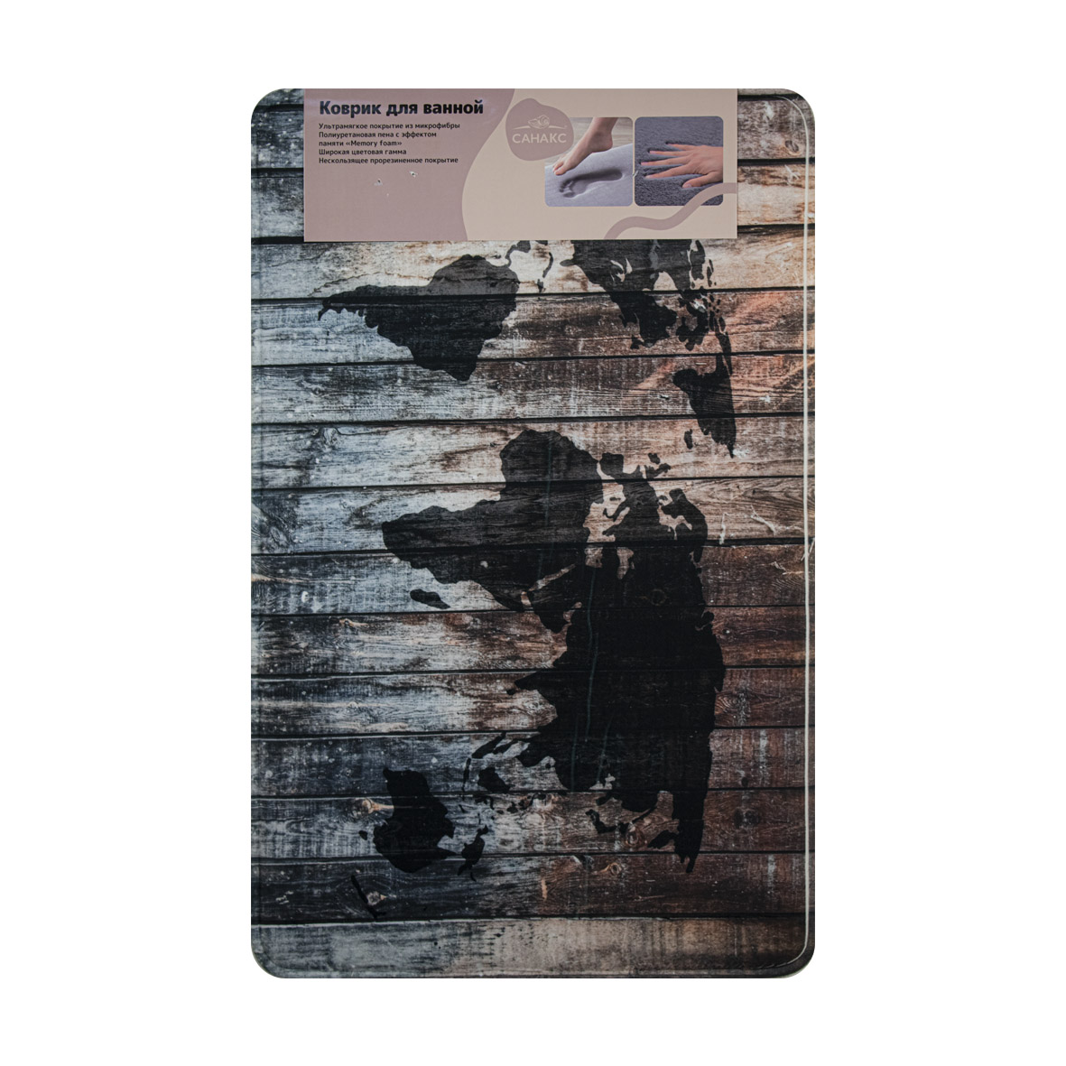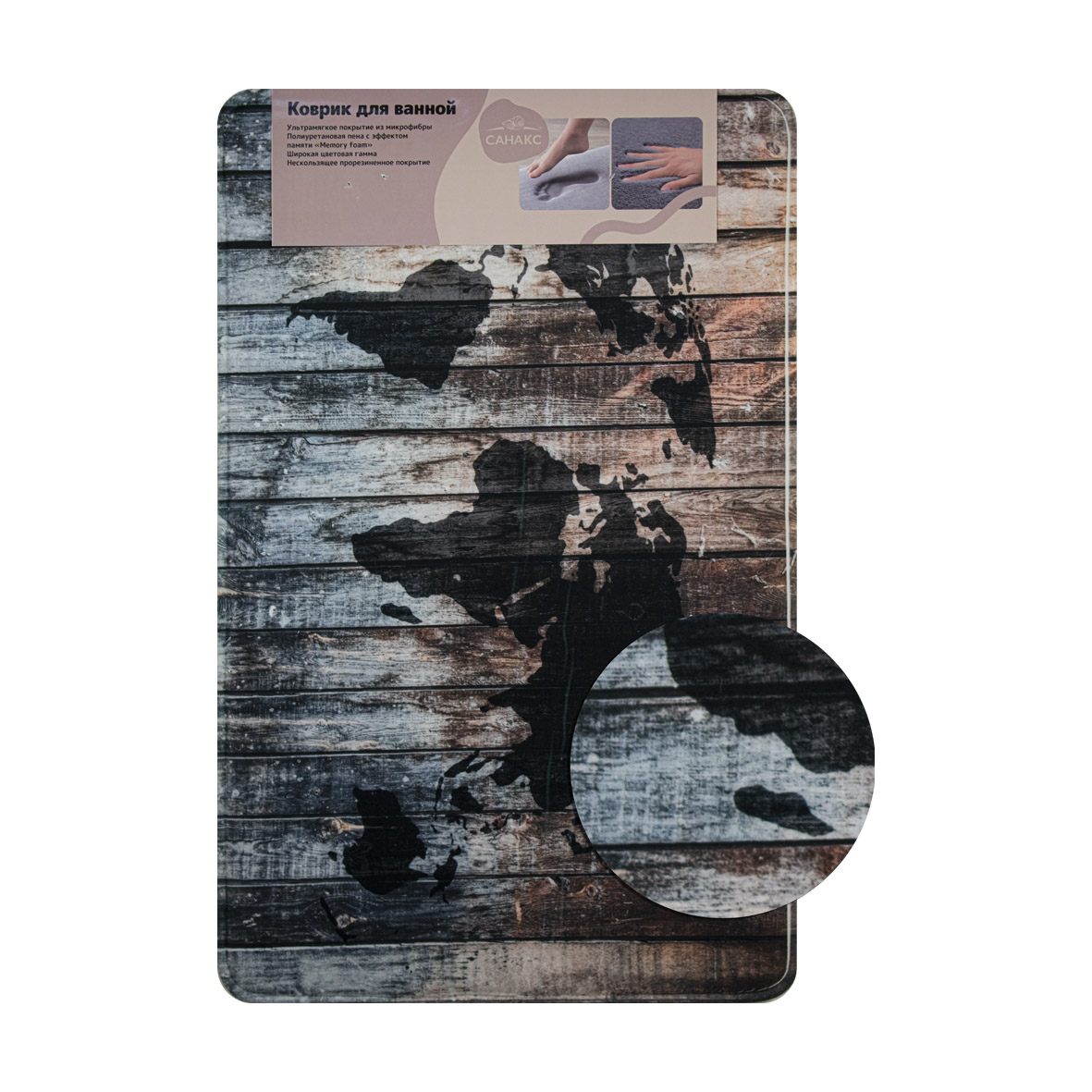 Коврик в ванную ПАМЯТЬ - эффект восстановления, одинарный, дизайнерский - карта мира 50 х 80 см