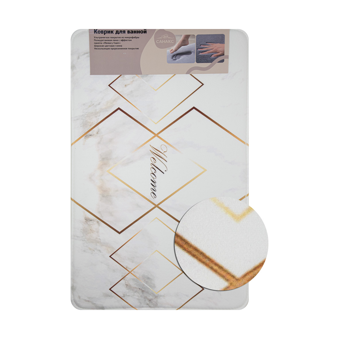 Коврик в ванную ПАМЯТЬ - эффект восстановления, одинарный, дизайнерский - ромбы 50 х 80 см