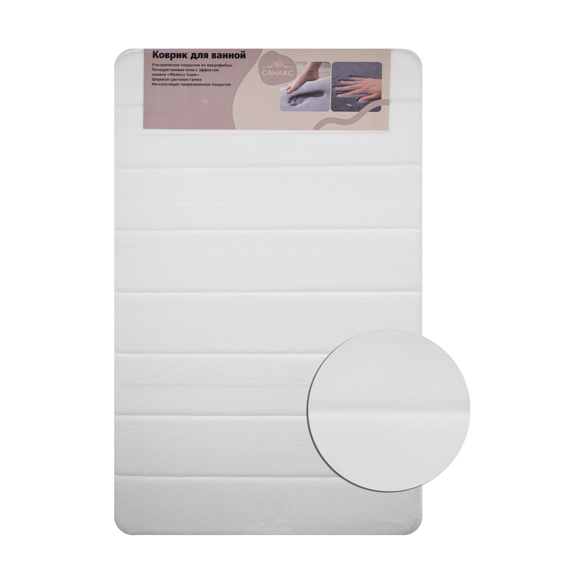 Коврик в ванную, одинарный с антискользящим покрытием однотонный, белый, высота ворса 18 мм. Мягкий, плотный и приятный на ощупь с эффектом восстановления. Стирать коврик можно в стиральной машине при 30-40 градусах без хлора. Состав коврика - полиэстер на качественной латексной основе, быстро сохнет и не накапливает влагу, износостойкий. Коврик универсального назначения: для ванны, для гостинной, на кухню и т. д. Габаритные размеры: высота 800 мм, ширина 500 мм. Вес - 0,470 кг, объём - 0,00579 м3