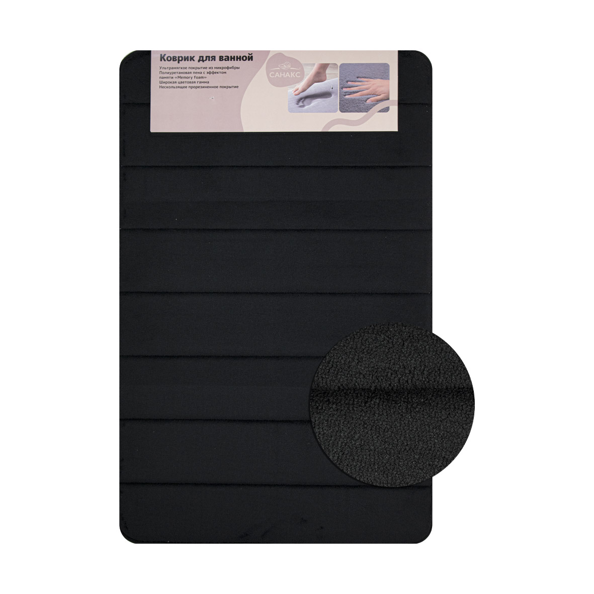 Коврик в ванную, одинарный с антискользящим покрытием однотонный, черный, высота ворса 18 мм. Мягкий, плотный и приятный на ощупь с эффектом восстановления. Стирать коврик можно в стиральной машине при 30-40 градусах без хлора. Состав коврика - полиэстер на качественной латексной основе, быстро сохнет и не накапливает влагу, износостойкий. Коврик универсального назначения: для ванны, для гостинной, на кухню и т. д. Габаритные размеры: высота 800 мм, ширина 500 мм. Вес - 0,470 кг, объём - 0,00579 м3