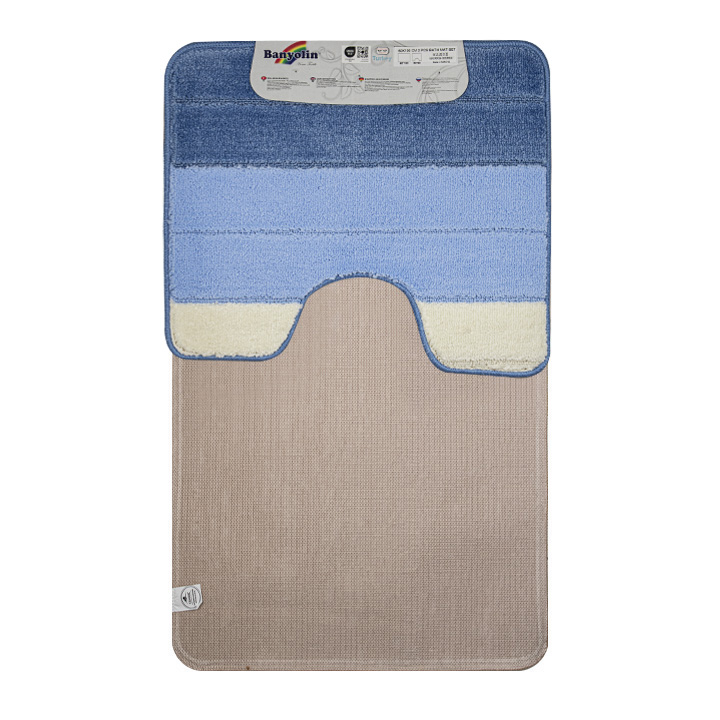 Коврик в ванную SILVER двойной, СИНИЙ, полосы, 60х100 + 50х60 см, 100% полиэстер.