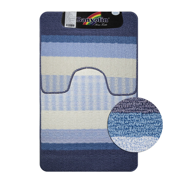 Коврик в ванную СТАР-ЛООП, двойной, СИНИЙ, 550 х 900, 550 х 450 мм, 100% полиэстер