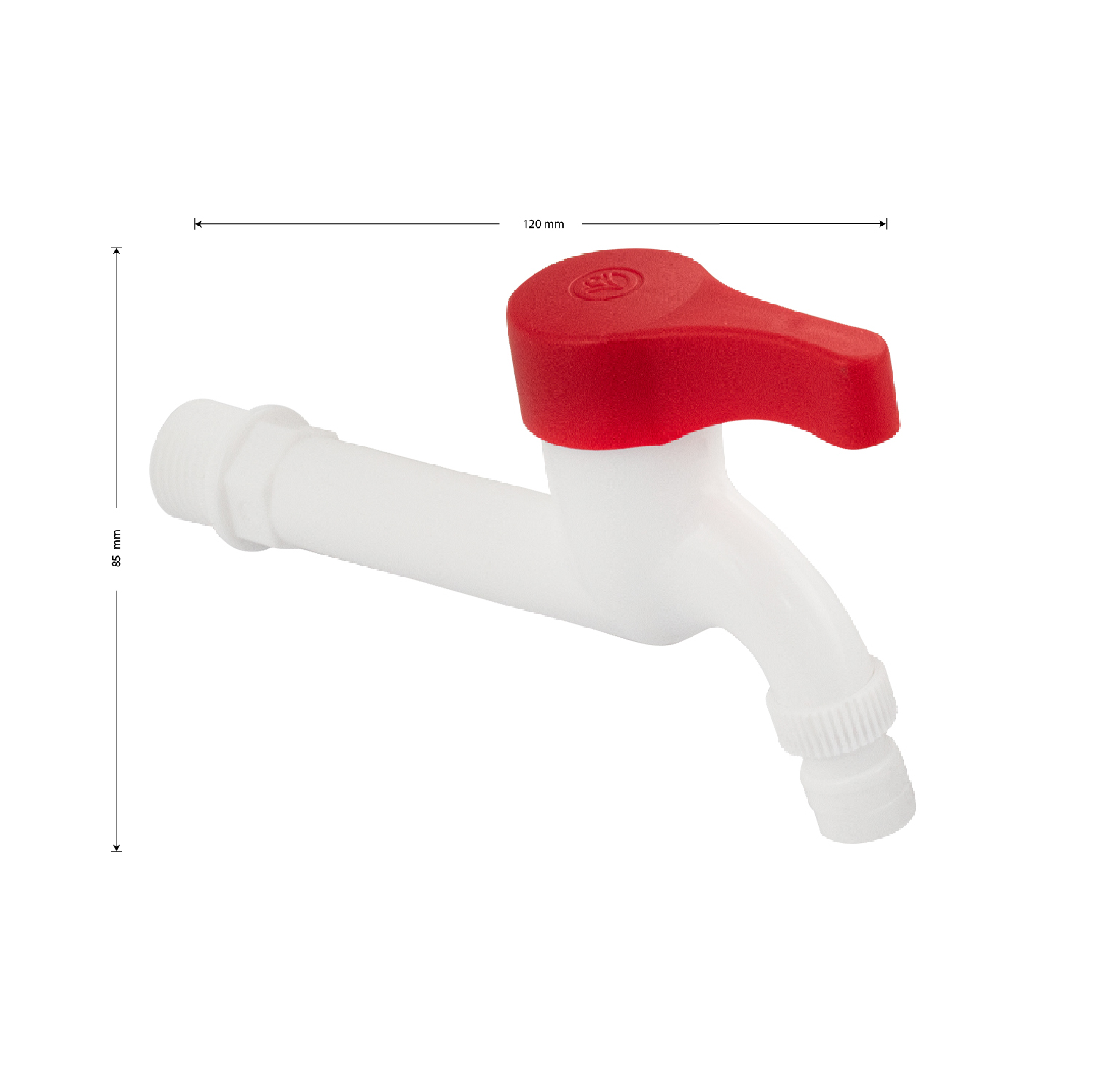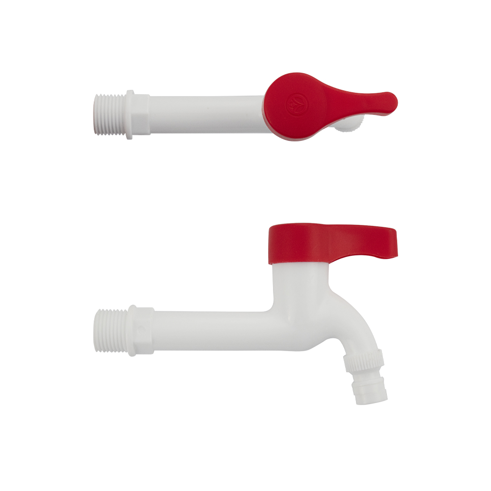 Кран водоразборный 1/2 н, из высокопрочного пластика АБС, белый, со штуцером, с возможностью подсоединения поливочного шланга. Габаритные размеры: длина 120 мм от стены, высота 85 мм. Металлокерамика, ручка - флажок. Вес - 0,060 кг, объём - 0,00035 м3. В комплекте корпус, прокладка.