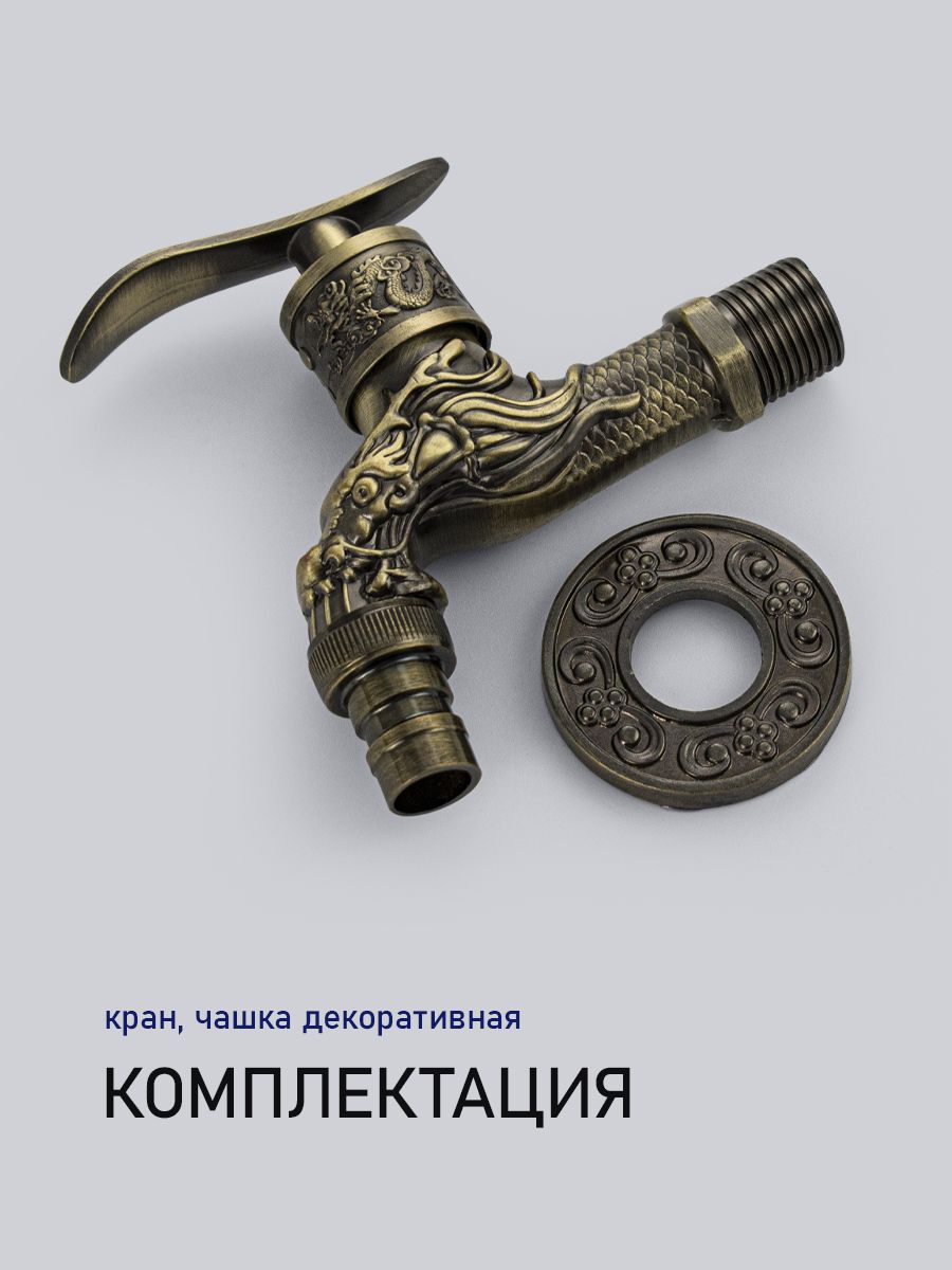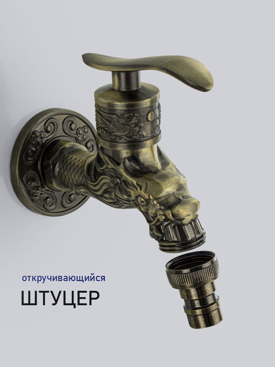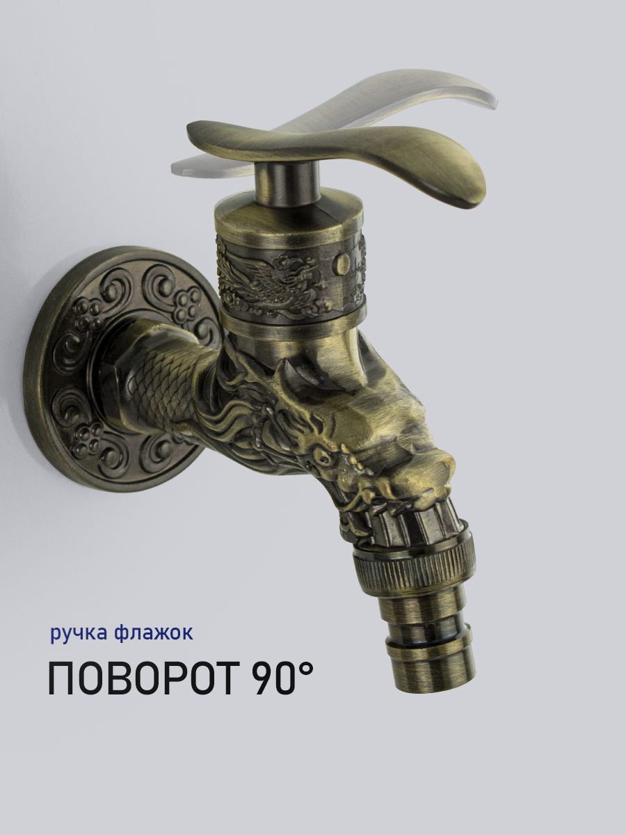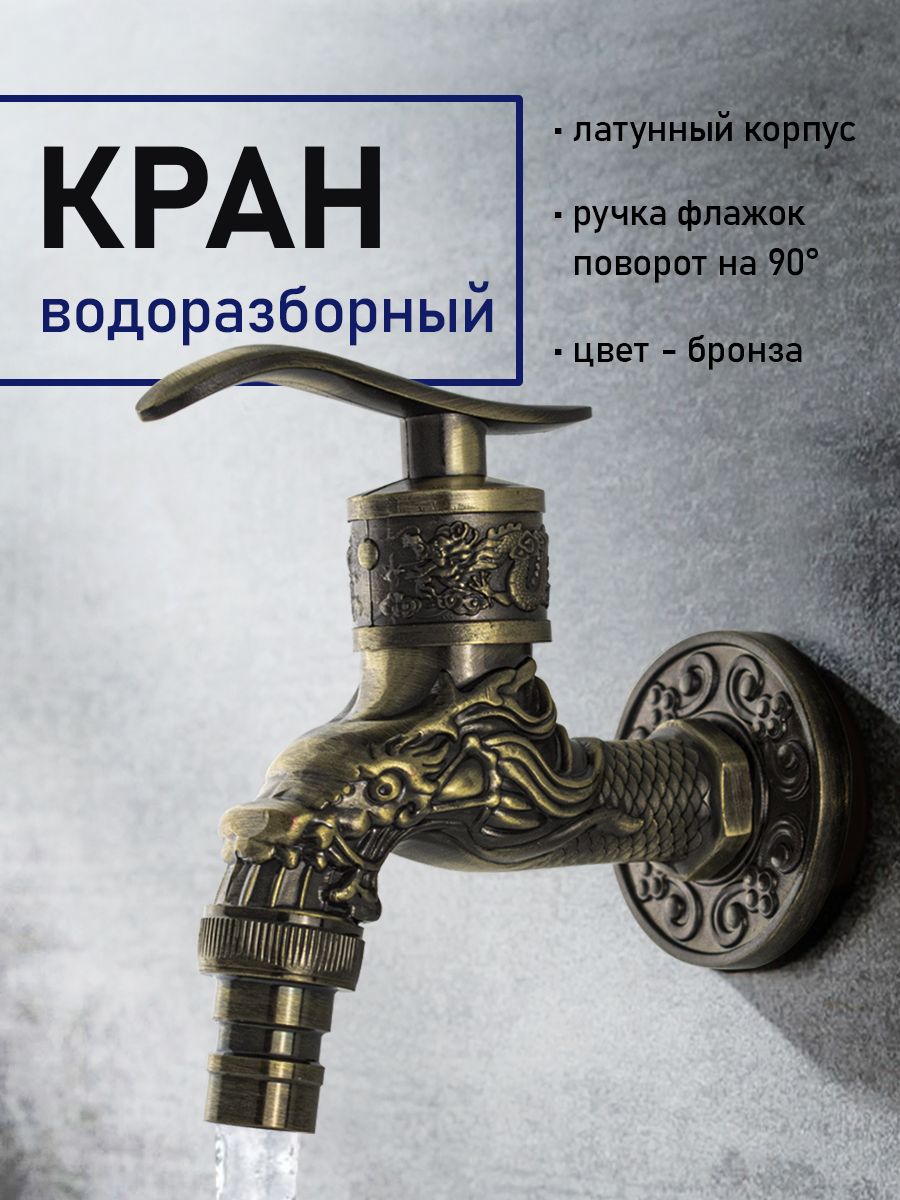 Кран водоразборный на 1/2", от стены 10 см, наружняя резьба, латунный корпус под бронзу, со штуцером для подключения поливочного шланга, металлокерамика, ручка флажок поворот на 90˚. Такая модель может использоваться на домашней кухне, на даче, в медицинских учреждениях и общественных местах. Габаритные размеры: высота 150 мм, длина 95 мм, диаметр посадочного седла 50 мм. Вес - 0,300 кг, объём - 0,00062 м3.