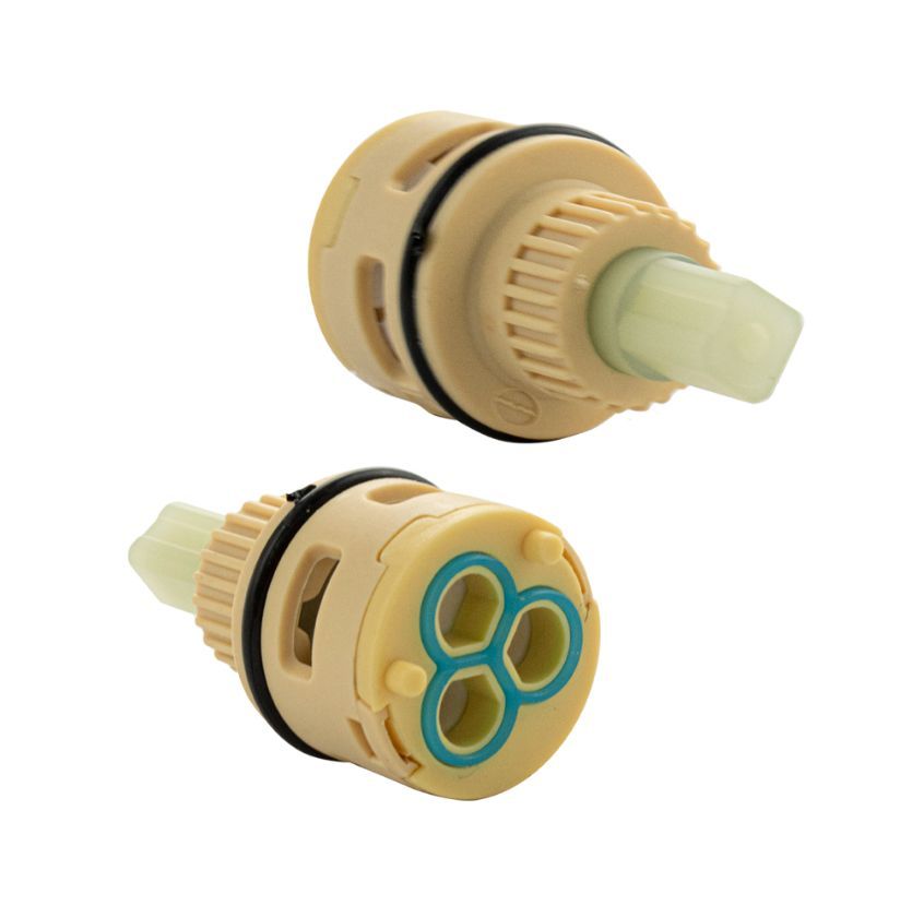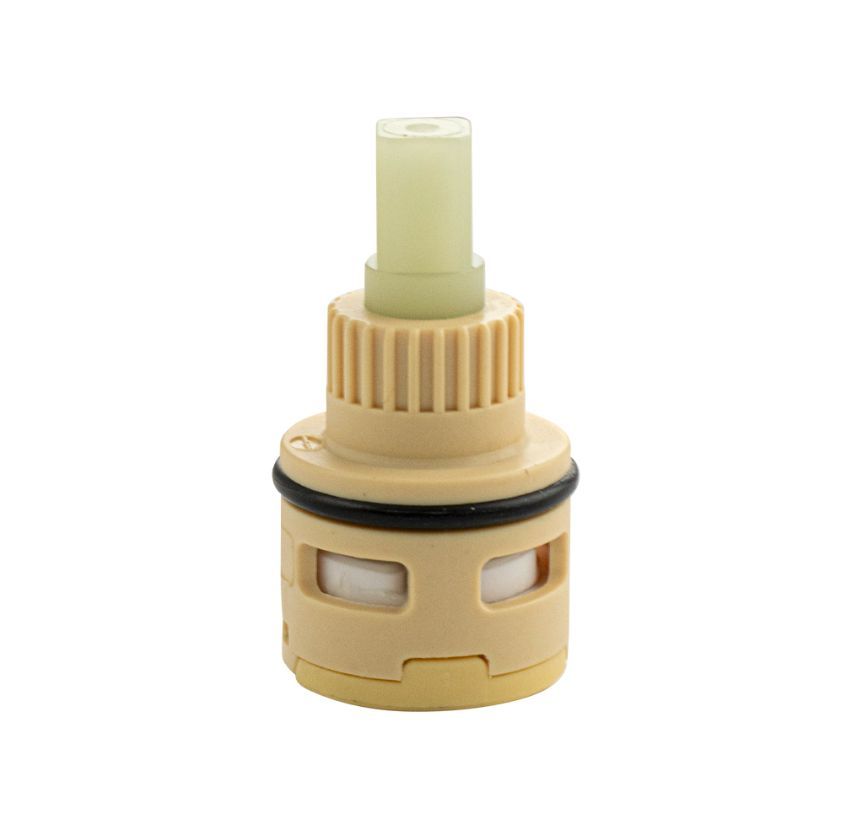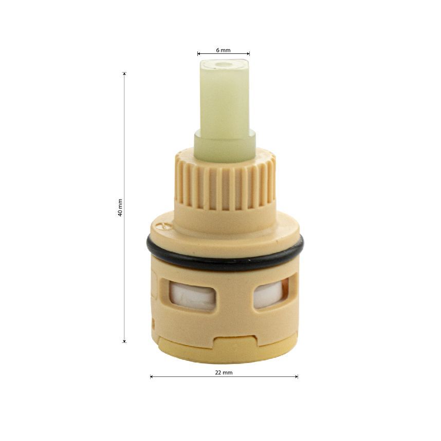 Картридж керамический для шарового переключения стойки тропический душ. Угол поворота картриджа 90°, оснащен керамическими пластинами, изготовленными из износостойкой керамики. Ударопрочный корпус изготовлен из сверхпрочного пластика АБС с аморфной молекулярной структурой. Корпус выдерживает гидроудары, что особенно актуально для потребителей в периоды ремонта водоснабжающих сетей. Картридж предназначается для переключения потока воды. Габаритные размеры: высота 40 мм, диаметр 22 мм. Вес - 0,020 кг, объём - 0,00005 м3.