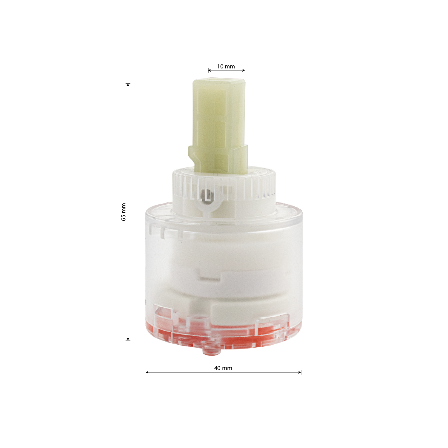 Картридж керамический предназначен для однорычажных смесителей. Угол поворота картриджа 90°, оснащен керамическими пластинами, изготовленными из износостойкой керамики. Ударопрочный корпус изготовлен из сверхпрочного пластика АБС с аморфной молекулярной структурой. Корпус выдерживает гидроудары, что особенно актуально для потребителей в периоды ремонта водоснабжающих сетей. Картридж для смесителя предназначается для смешивания потока горячей и холодной воды с целью получения на выходе комфортной температуры и обеспечивает надежную работу и точность регулировки воды в течение многих лет. Габаритные размеры: высота 65 мм, диаметр 40 мм. Вес - 0,050 кг, объём - 0,00031 м3.