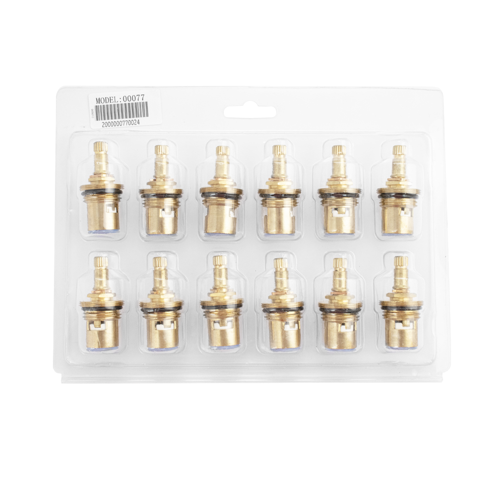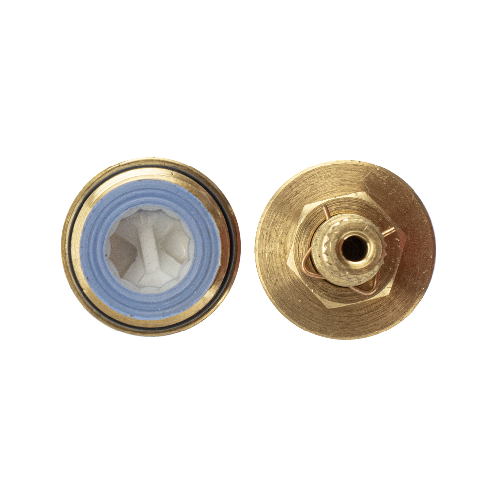 Кран-букса металлокерамика, с дополнительной резьбой, используется для двуручковых (с двумя маховиками) смесителей. Посадочный размер кран-буксы: 1/2″ под ручку "крест", латунная, 20 шлицов, угол поворота 90°. Изделие состоит из корпуса и штока. При повороте ручки в одну сторону конструкция раскрывается, пропуская воду. При полном закручивании все компоненты герметично состыковываются. Габаритные размеры: высота 50 мм, ширина 25 мм. Вес - 0,55 кг, объём - 0,00007 м3.