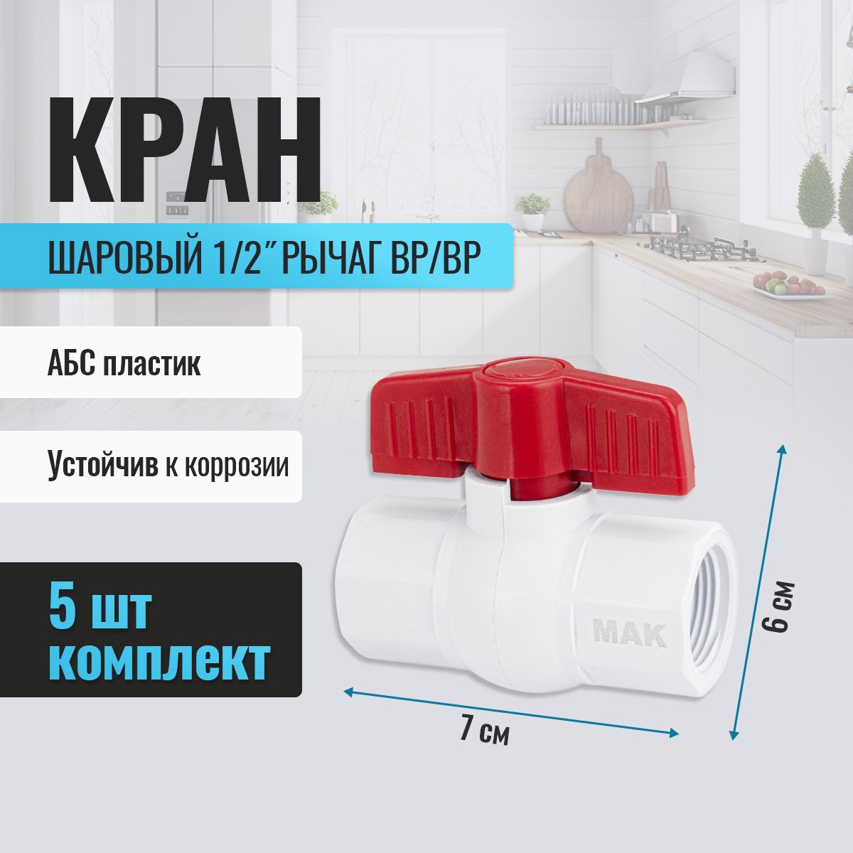 Кран шаровый, 1/2" м/м, ручка-бабочка, полипропиленовый, из АБС пластика. Макс давление 10 Бар. Основное преимущество, которым обладают шаровые краны - это регуляция потока воды, его плавности и интенсивности. Изделие изготовлено из полипропилена, что делает его легче и проще в плане эксплуатации, чем запорная арматура из других материалов (таких как латунь, сталь и др.), а также устойчив к коррозии (нержавеющий). Габаритные размеры: высота 60 мм, длина 70 мм. Вес - 0,080 кг, объём - 0,00020 м3.