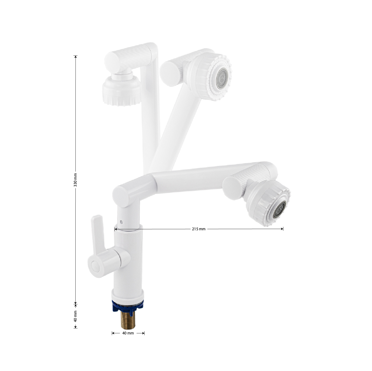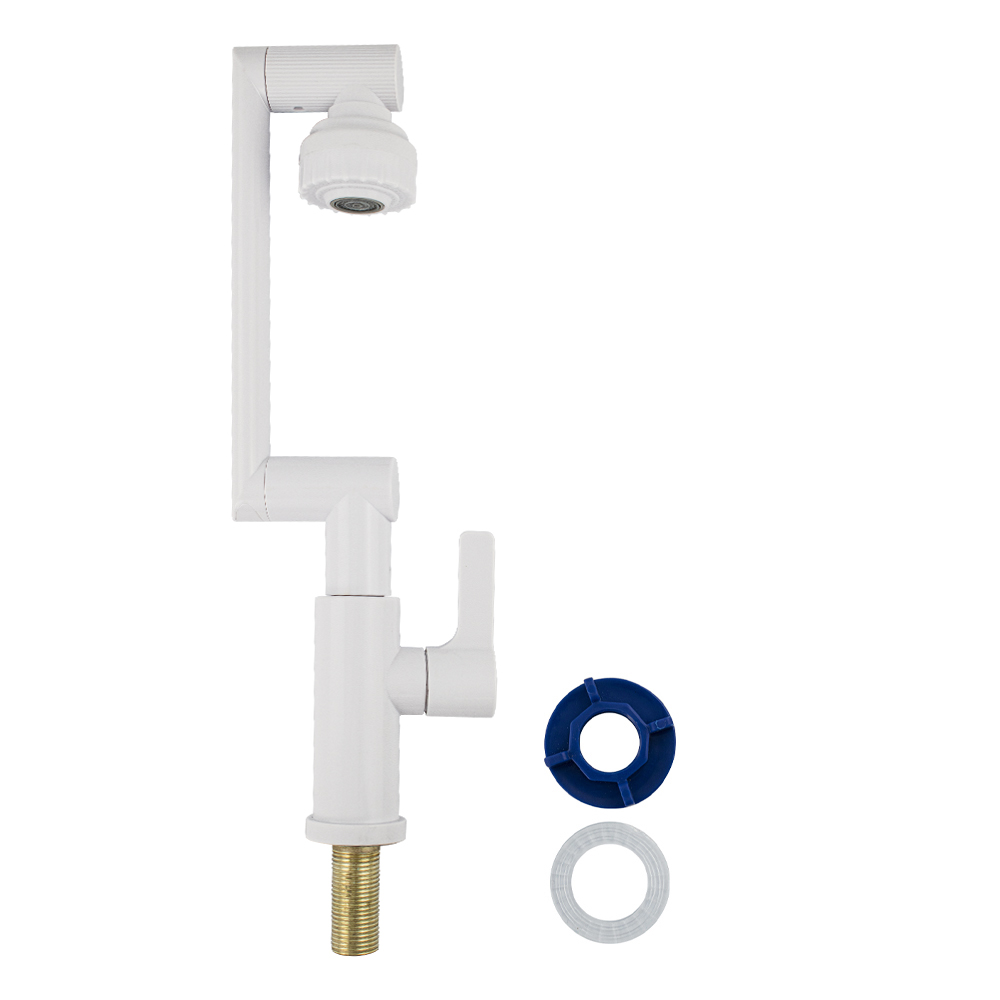 Кран на одну воду для кухни и раковины, с поворотным изливом и аэратором из высокопрочного АБС пластика. Крепление резьба - гайка. Кранбукса м/к, ручка - флажок, поворот на 90˚. Габаритные размеры: высота 330 мм, длина 215 мм, диаметр посадочного седла 40 мм, длина резьбы 40 мм. Вес - 0.51 кг, объём - 0.003 м3. В комплекте корпус, прокладка