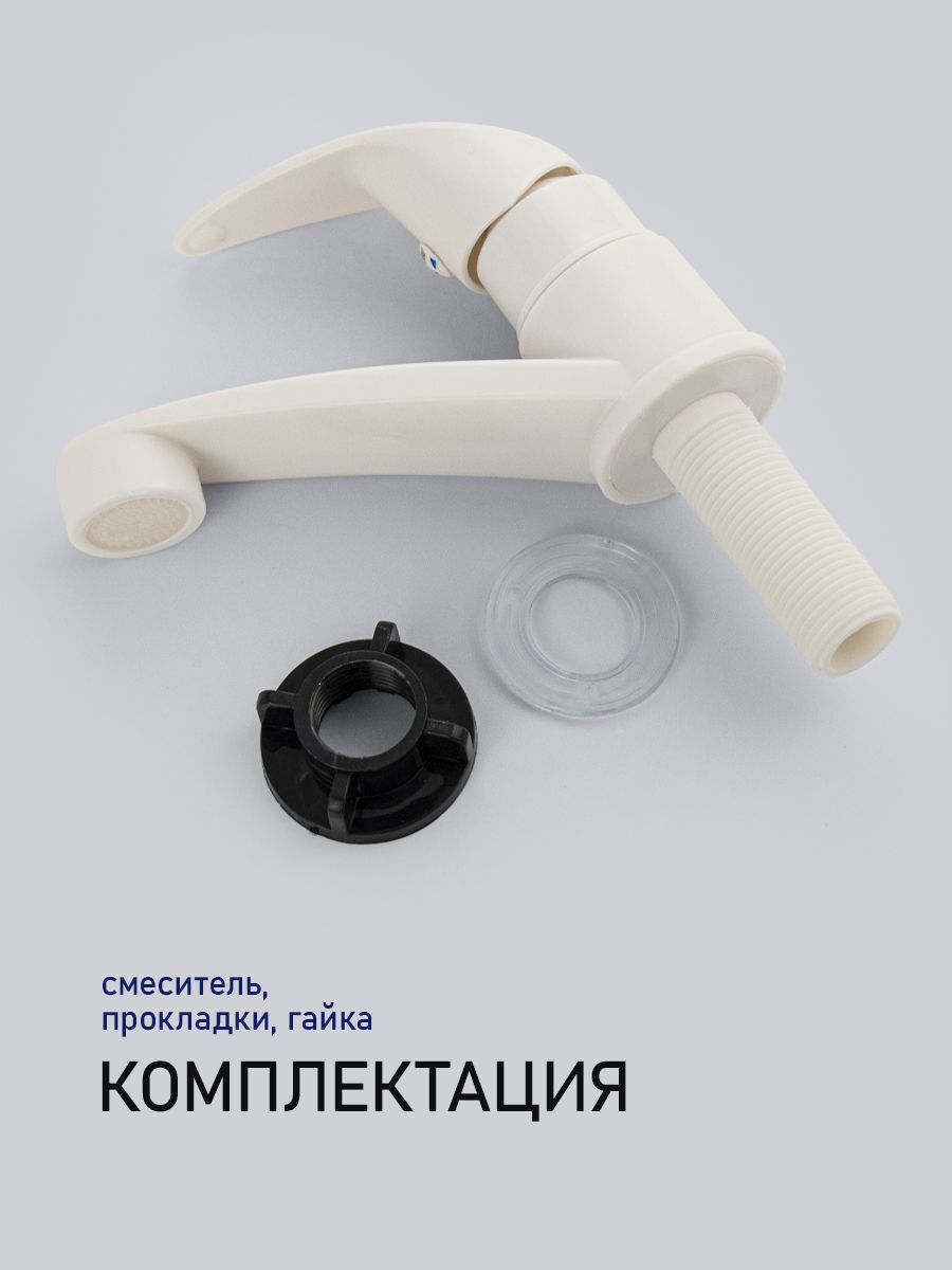Кран на одну воду, из высокопрочного пластика АБС, белый, с аэратором для экономии воды, шаровый, с плоским коротким изливом. Крепление резьба - гайка. Габаритные размеры: высота 95 мм, длина 130 мм, диаметр посадочного седла 50 мм, длина резьбы 57 мм. Вес - 0,100 кг, объём - 0,00133 м3. В комплекте корпус, крепёж, паспорт.