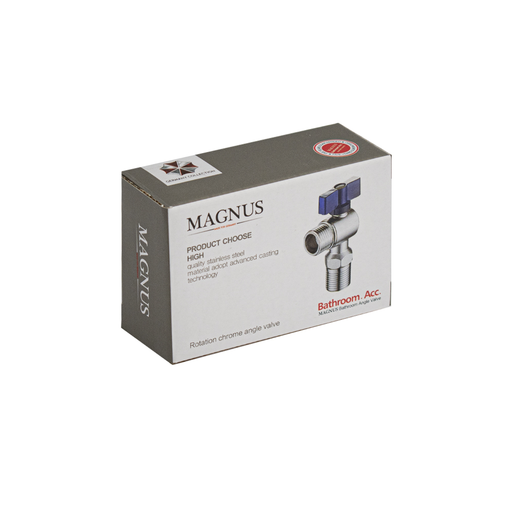 Кран шаровый, угловой, 1/2"х1/2" синяя ручка флажок, наружняя резьба, из нержавеющей стали марки SUS 304, ручка поворот на 90˚, предназначен для подключения к водопроводной сети санитарных приборов (смывных бачков, стиральных и посудомоечных машин, лейки биде и пр.) с помощью гибких соединителей с накидной гайкой. Позволяет перекрывать подачу воды к конкретному потребителю. Габаритные размеры: ширина 60 мм, диаметр посадочного седла 50 мм. Вес - 0.14 кг, объём - 0.00023 м3. В комплекте кран, декоративная чашка.