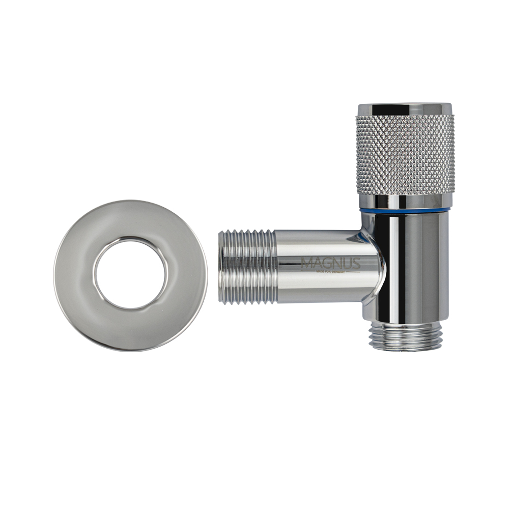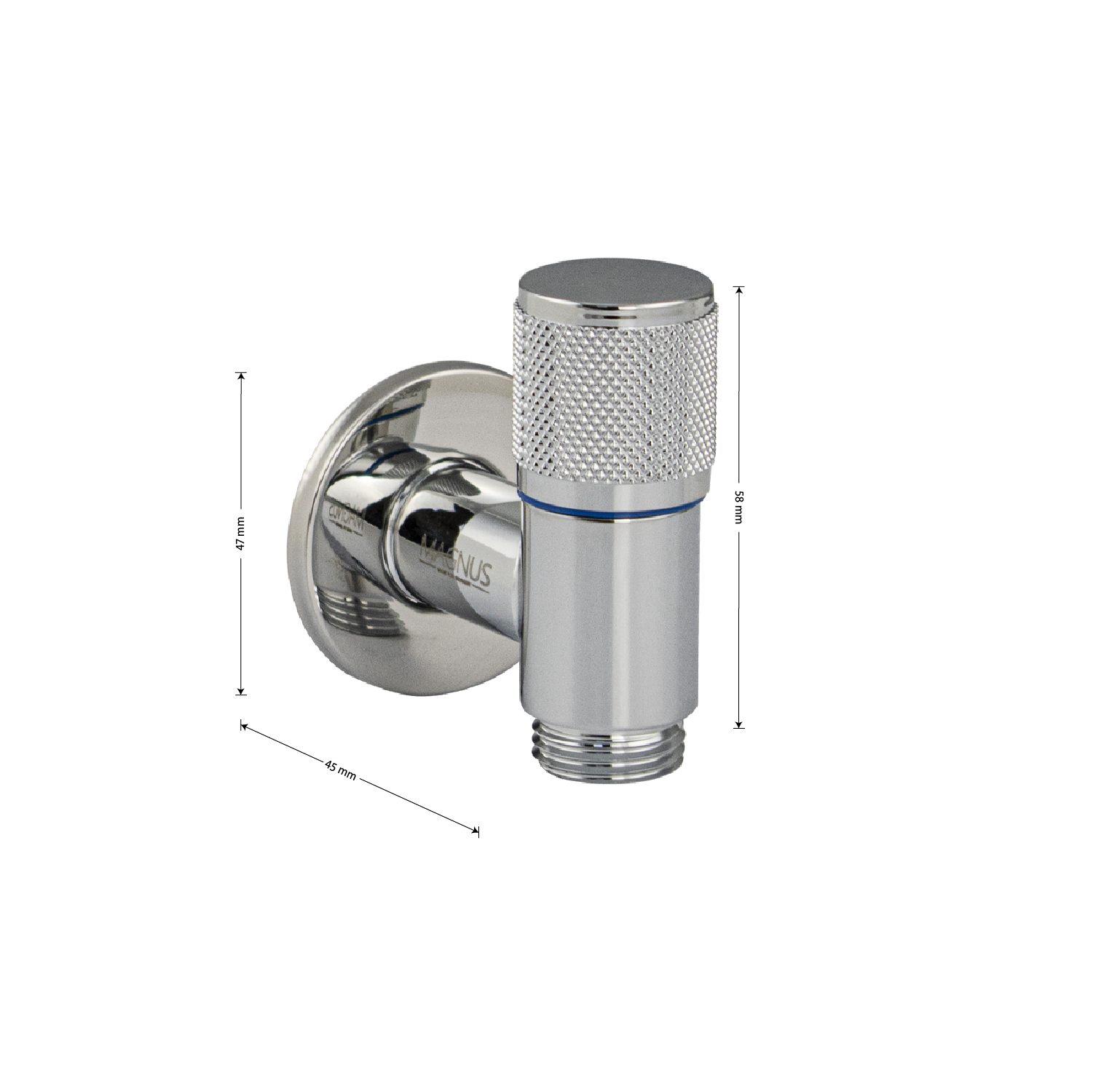 Кран металлокерамика угловой 1/2"х1/2" круглый корпус, с чашкой, наружняя резьба, хромированный корпус, ручка поворот на 90˚, предназначен для подключения к водопроводной сети санитарных приборов (смывных бачков, стиральных и посудомоечных машин, лейки биде и пр.) с помощью гибких соединителей с накидной гайкой. Позволяет перекрывать подачу воды к конкретному потребителю. Габаритные размеры: высота 58 мм, ширина 45 мм, диаметр посадочного седла 47 мм. Вес - 0.14 кг, объём - 0.00025 м3. В комплекте кран, чашка.