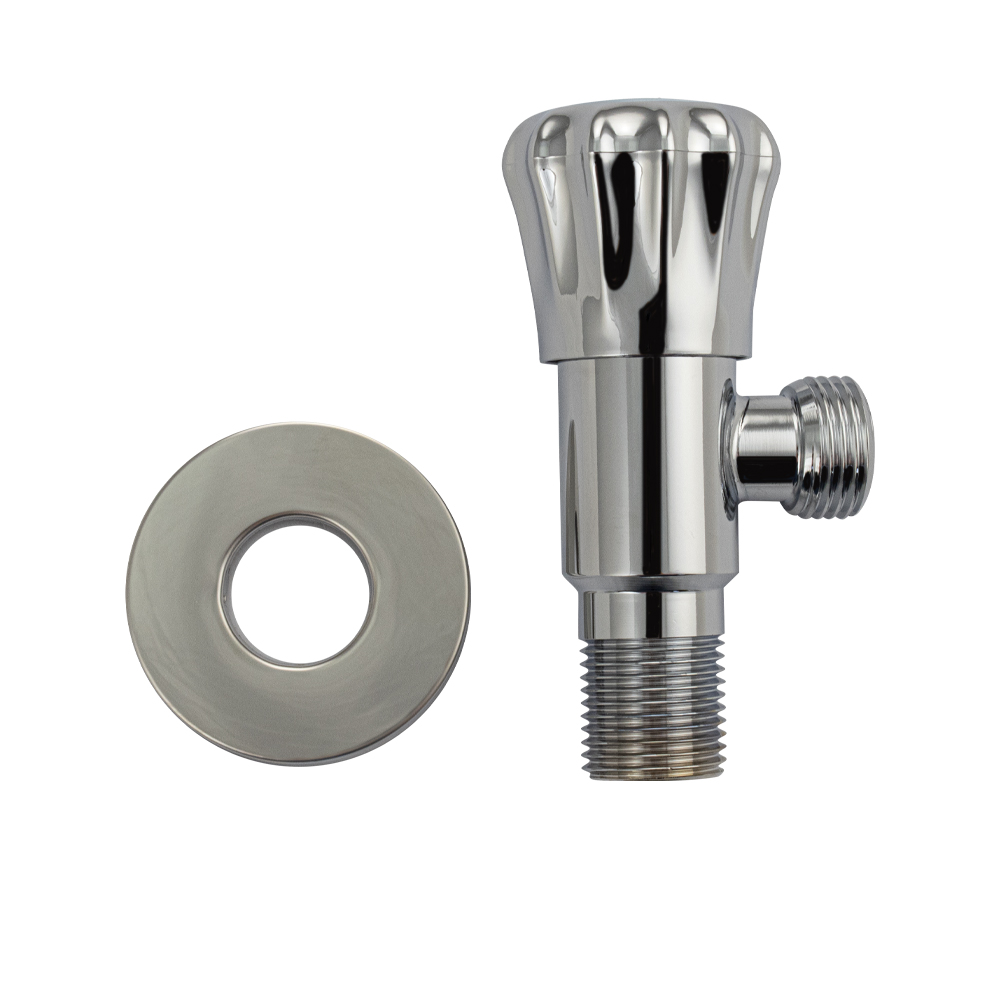Кран металлокерамика угловой 1/2"х1/2" с чашкой, наружняя резьба, хромированный корпус из нержавеющей стали марки 201, круглая ручка с кнопкой, предназначен для подключения к водопроводной сети санитарных приборов (смывных бачков, стиральных и посудомоечных машин, лейки биде и пр.) с помощью гибких соединителей с накидной гайкой. В корпусе фильтр - сетка, легко чистится. Позволяет перекрывать подачу воды к конкретному потребителю. Габаритные размеры: высота 100 мм, ширина 40 мм, диаметр посадочного седла 50 мм, длина резьбы 30 мм. Вес - 0,200 кг, объём - 0,00030 м3. В комплекте кран, чашка.