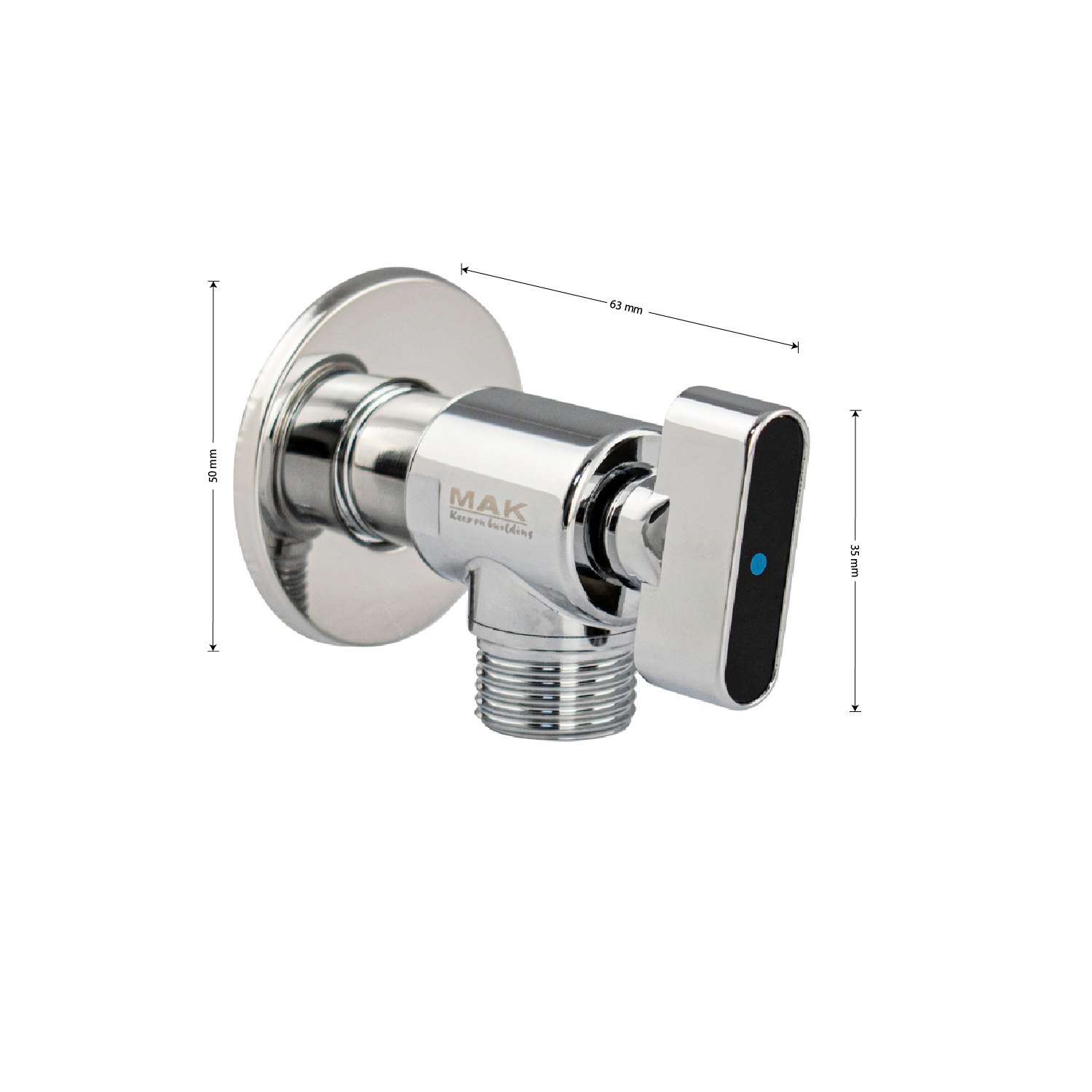 Кран шаровый, угловой, 1/2"х1/2" ручка флажок, наружняя резьба, латунный корпус, ручка поворот на 90˚, предназначен для подключения к водопроводной сети санитарных приборов (смывных бачков, стиральных и посудомоечных машин, лейки биде и пр.) с помощью гибких соединителей с накидной гайкой. Позволяет перекрывать подачу воды к конкретному потребителю. Габаритные размеры: ширина 63 мм, диаметр посадочного седла 50 мм. Вес - 0.2 кг, объём - 0,00027 м3. В комплекте кран, декоративная чашка.