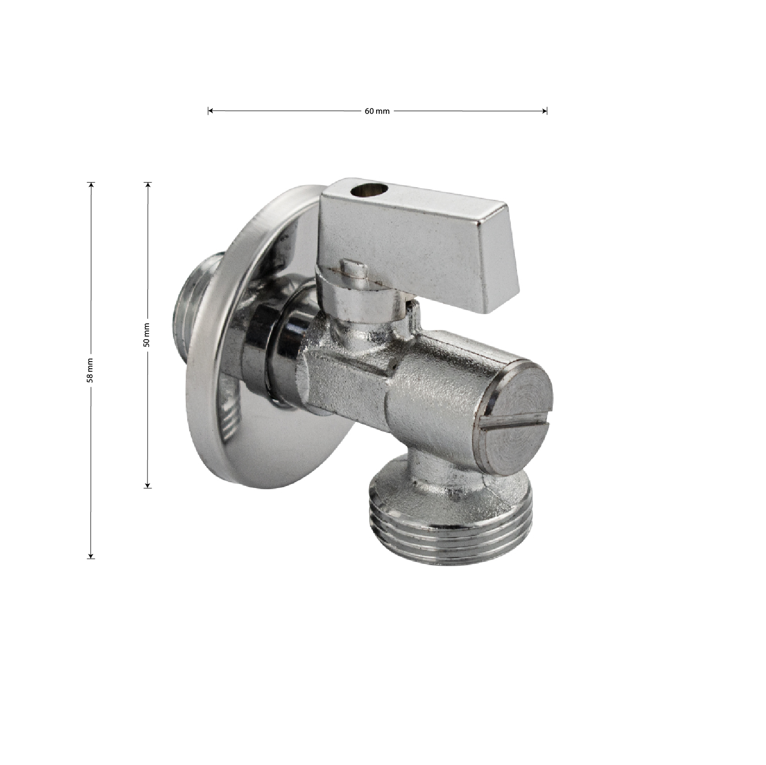 Кран шаровый, угловой, 1/2"х3/4" ручка флажок, наружняя резьба, хромированно-матовый латунный корпус, ручка поворот на 90˚, с фильтрующей сеткой, предназначен для подключения к водопроводной сети санитарных приборов (смывных бачков, стиральных и посудомоечных машин, лейки биде и пр.) с помощью гибких соединителей с накидной гайкой. Позволяет перекрывать подачу воды к конкретному потребителю. Габаритные размеры: высота 58 мм, ширина 60 мм, диаметр посадочного седла 50 мм, длина резьбы мм. Вес - 0.10 кг, объём - 0.00027 м3. В комплекте кран.