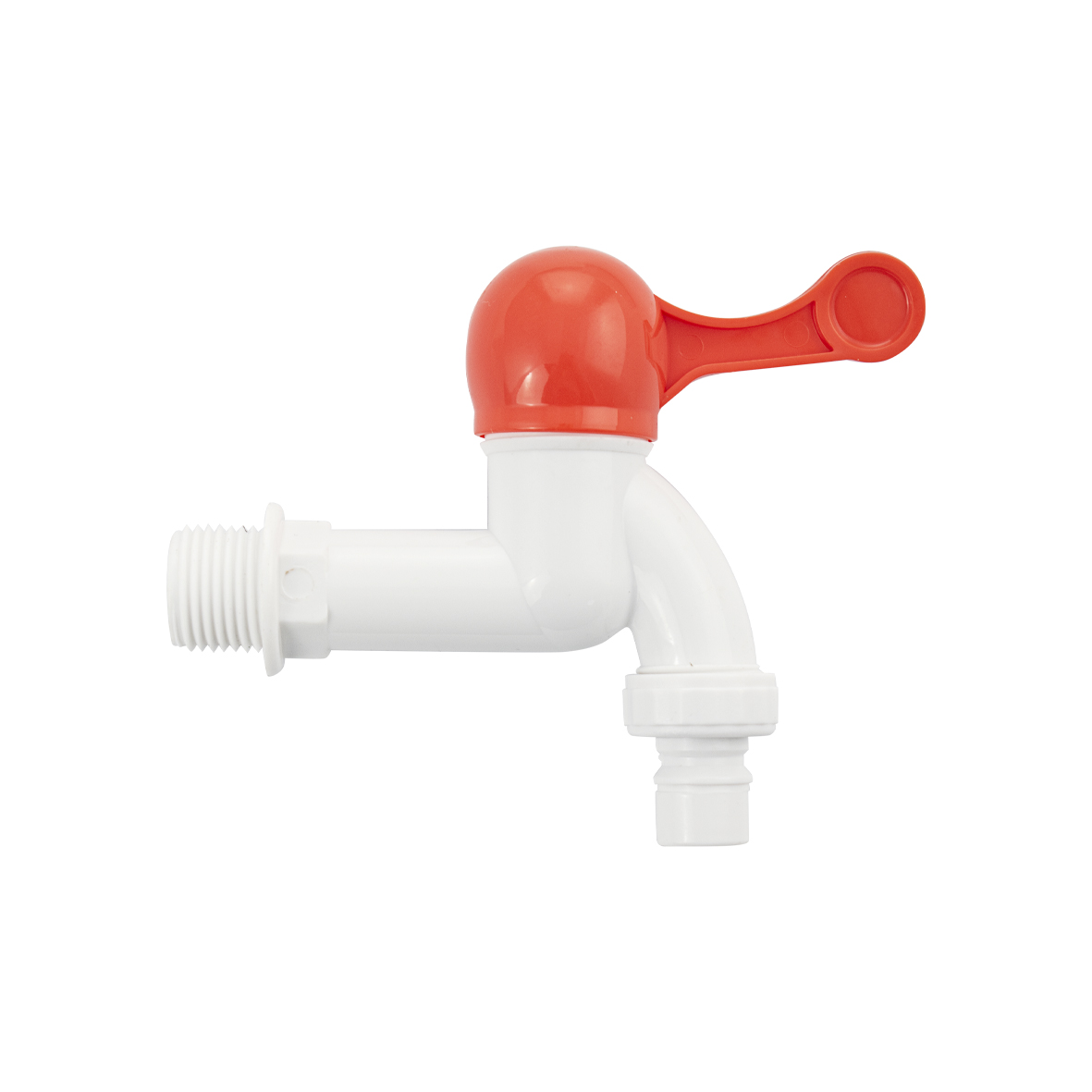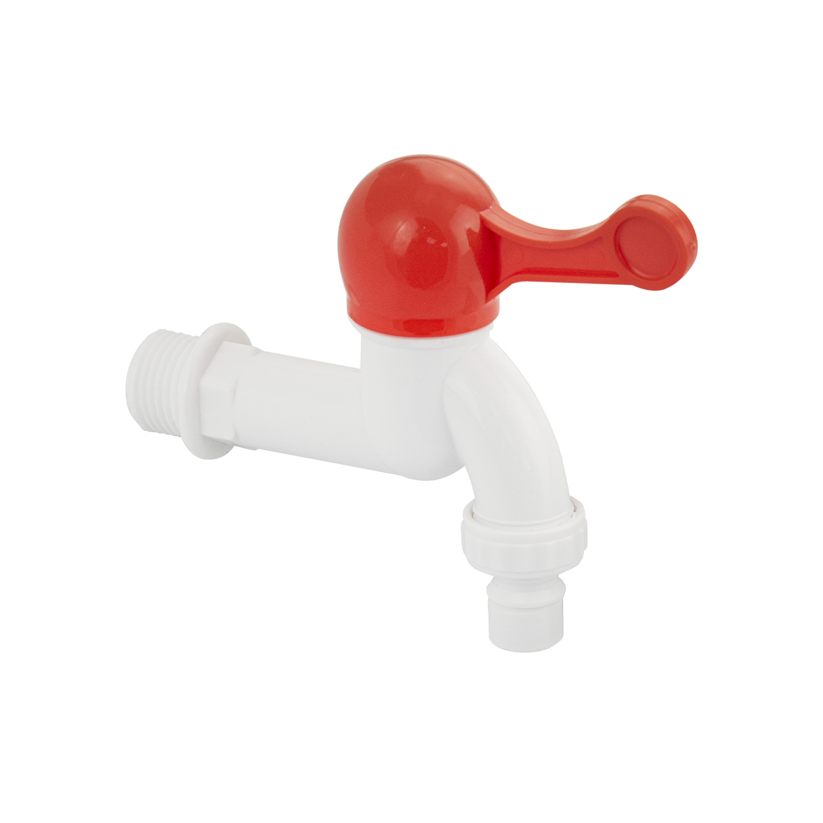 Кран водоразборный 1/2, из высокопрочного пластика АБС белый со штуцером, с возможностью подсоединения поливочного шланга. Габаритные размеры: высота 100 мм, 110 мм от стены. Металлокерамика, ручка - флажок. Вес - 0,044 кг, объём - 0,00032 м3