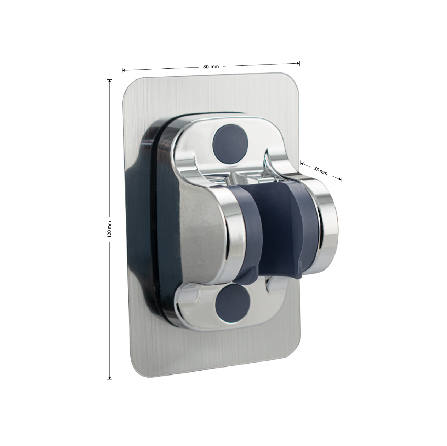 Кронштейн для душевой лейки пластик АБС, хромированный, поворотный. Крепление для душа позволяет фиксировать шланг в вертикальном положении возле стены или в другом удобном месте. Хромированное покрытие обеспечивает высокую устойчивость к коррозии и эстетичный внешний вид. С крепления легко удалить загрязнения, капли воды и известковый налет.Изделие крепится к стене с помощью самоклейки, без сверления. Габаритные размеры: высота 120 мм, ширина 80 мм, глубина 55 мм. Вес - 0,1 кг, объём - 0,00075 м3.