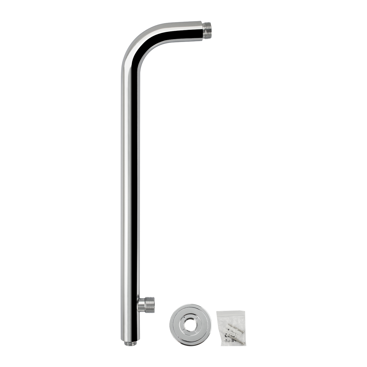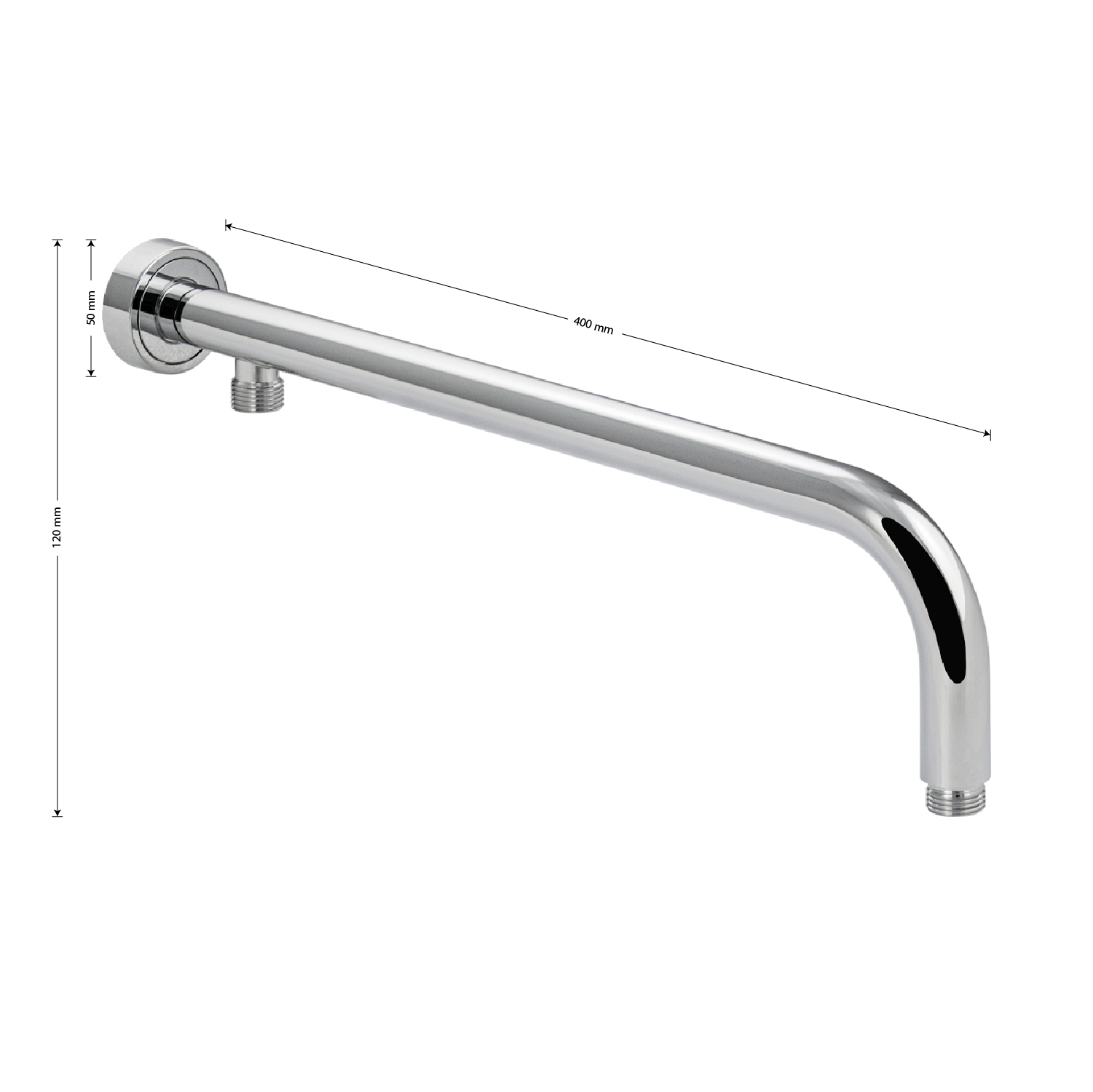 Кронштейн для верхнего душа с внешним подключением GFmark 400*22 мм, резьба 1/2, материал изготовления нержавеющая сталь, хромированный глянцевый. Настенный держатель для верхней лейки (тропического душа) для ванной (душа, душевой кабины). Толщина и прочность материала гарантируют долгую службу. Хромированное покрытие улучшает внешний вид изделия и упрощает уход за ним: устойчиво к истиранию и воздействию воды. Габаритные размеры: высота 120 мм, длина 400 мм, диаметр посадочного седла 50 мм. Вес 0,24 кг, объем 0,0007 м3.