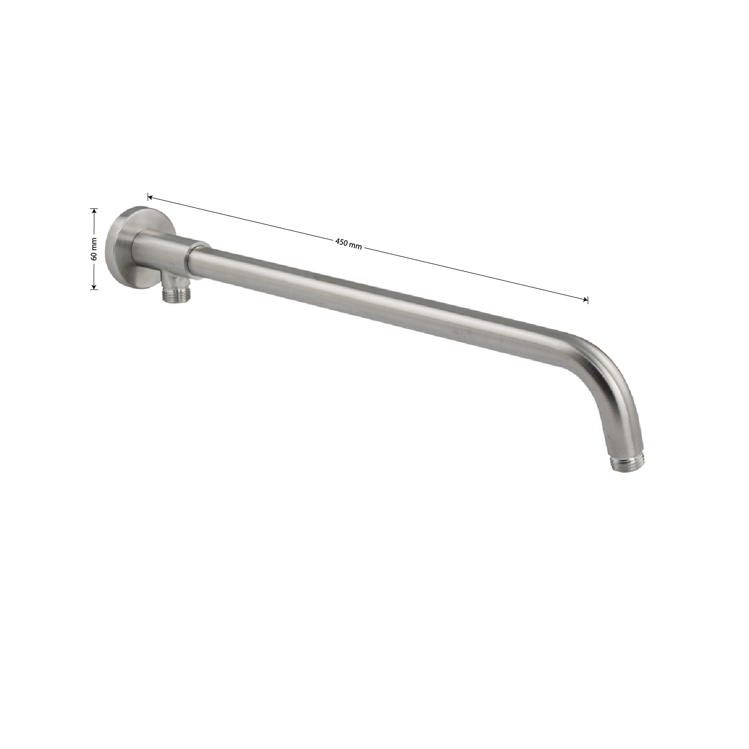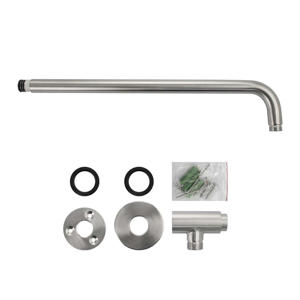 Кронштейн для верхнего душа с внешним подключением GFmark 400*22 мм, резьба 1/2, материал изготовления нержавеющая сталь, матовый. Настенный держатель для верхней лейки (тропического душа) для ванной (душа, душевой кабины). Толщина и прочность материала гарантируют долгую службу. Матовая поверхность улучшает внешний вид изделия и упрощает уход за ним: устойчиво к истиранию и воздействию воды. Габаритные размеры: высота 120 мм, длина 450 мм, диаметр посадочного седла 60 мм. Вес кг, объем м3.