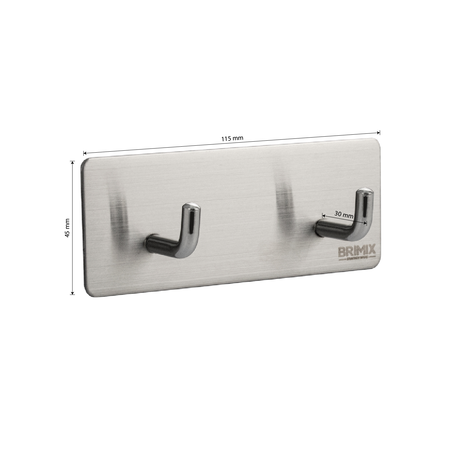 Вешалка - держатель для принадлежностей, металлический, матовый, с двумя крючками. Изготовлен из прочной нержавеющей стали марки SUS 304 с матовым покрытием, которое придает безупречный стильный вид и долговечность. На держателе, с легкостью можно размещать вещи для сушки или вешать, как полотенца, так и одежду перед походом в душ. Идеально подойдет не только для ванной, но и для кухни, а также для дачи или гаража - при необходимости на держатель можно вешать любые предметы. Изделие крепится к стене с помощью самоклейки, без сверления. Габаритные размеры: длина 115 мм, высота 45 мм, глубина 30 мм. Вес - 0,100 кг, объём - 0,00023 м3.