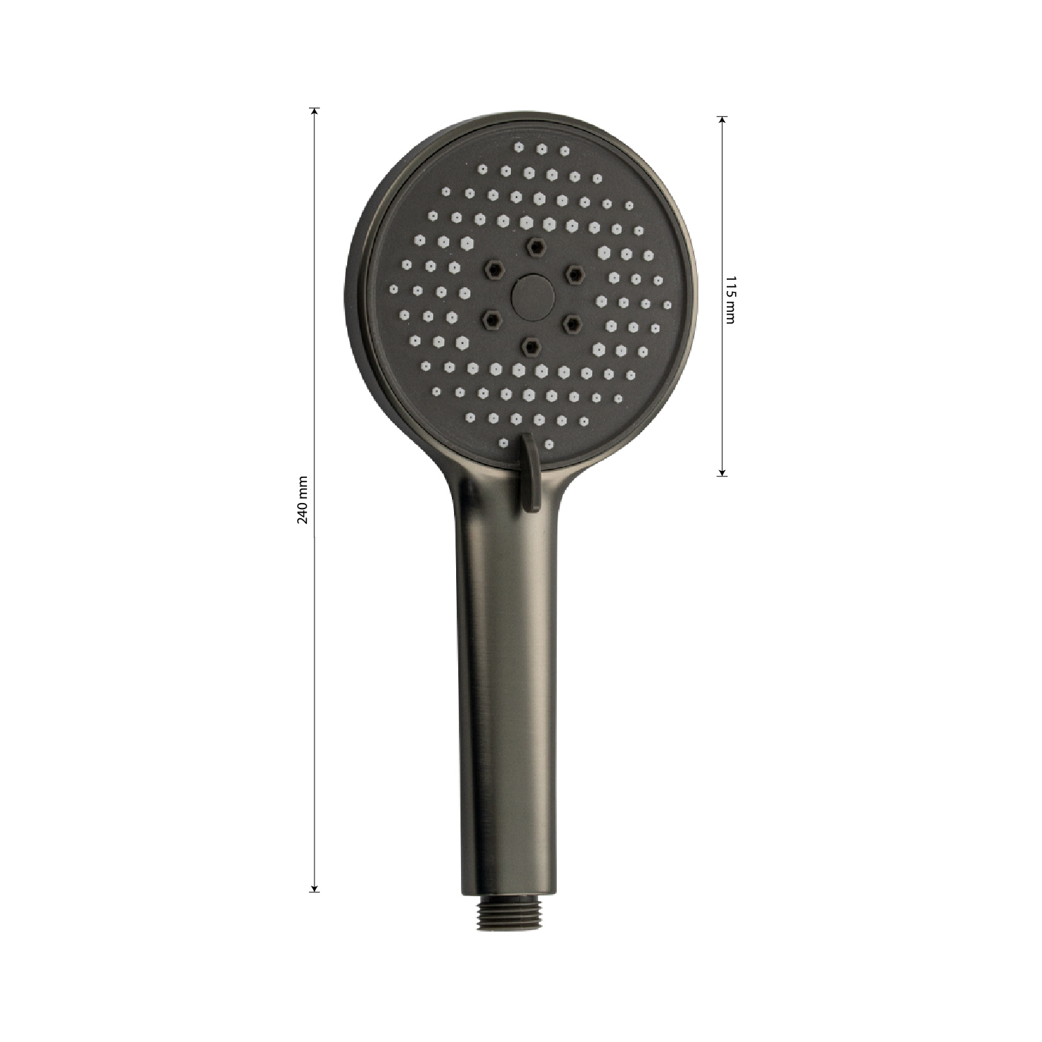 Душевая лейка массажная круглая, отличается современным технологичным дизайном, высокой надежностью, долговечностью. Она изготовлена из влагостойкого пластика АБС и имеет декоративное покрытие графитового цвета, придающее устройству привлекательный вид и предохраняющее от агрессивного воздействия окружающей среды. Корпус отличается небольшим весом, что исключает повреждение напольной плитки или эмали ванны при случайном падении. Работает в двух режимах с регулируемой интенсивностью: обычная, струйный массаж. Ухаживать за душевой лейкой легко. Матовую поверхность достаточно протереть мягкой салфеткой, она в течение долгого времени не потеряет своего вида. Система помогает мгновенно очистить силиконовые форсунки душевой лейки от известкового налета и загрязнения. Габаритные размеры: высота 240 мм, диаметр лейки 115 мм. Вес - 0,250 кг, объём - 0,00160 м3.