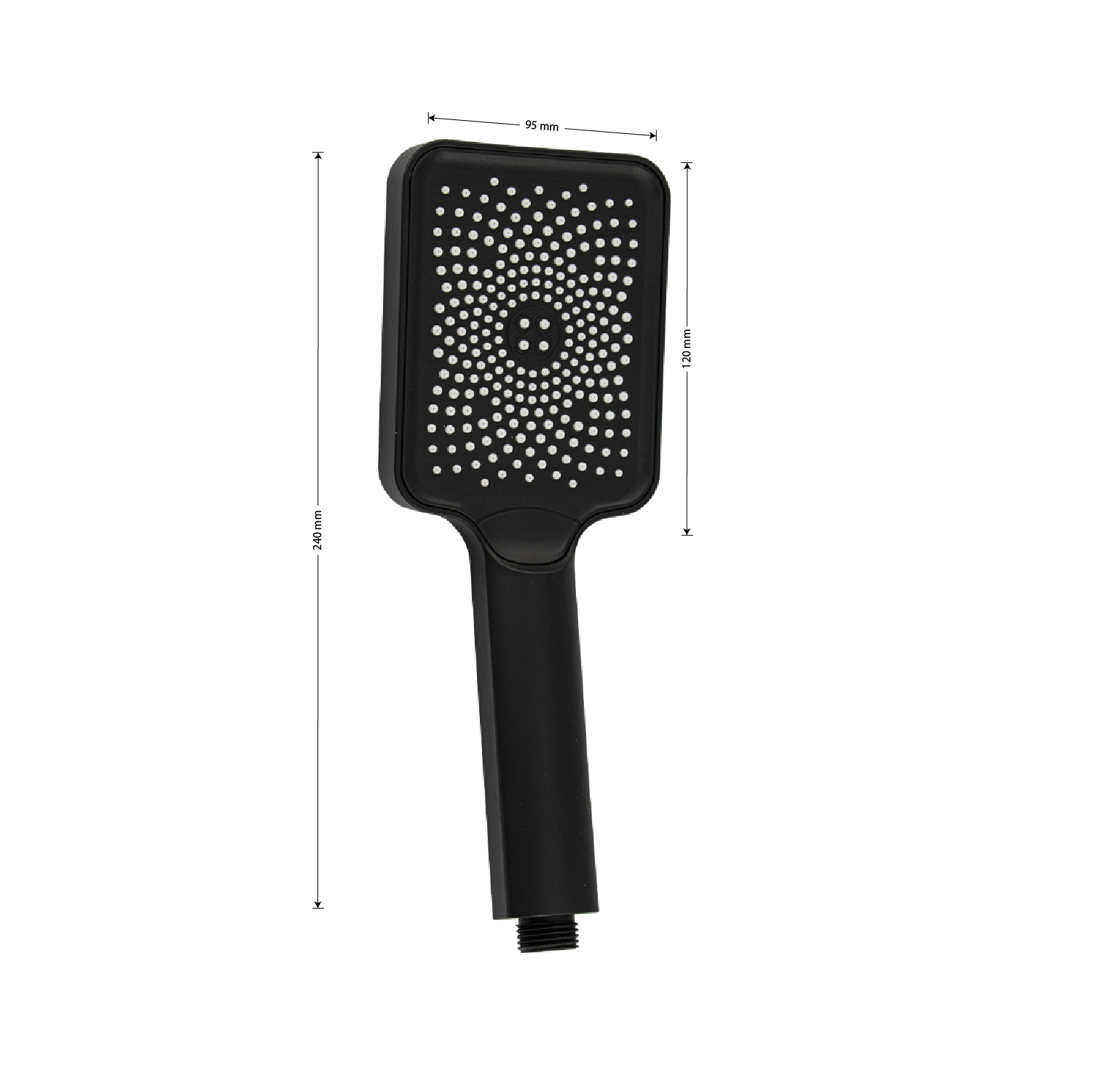 Душевая лейка массажная, отличается современным технологичным дизайном, высокой надежностью, долговечностью. Она изготовлена из влагостойкого пластика АБС и имеет декоративное покрытие черного цвета, придающее устройству привлекательный вид и предохраняющее от агрессивного воздействия окружающей среды. Корпус отличается небольшим весом, что исключает повреждение напольной плитки или эмали ванны при случайном падении. Ухаживать за душевой лейкой легко. Система помогает мгновенно очистить силиконовые форсунки душевой лейки от известкового налета и загрязнения. Габаритные размеры: высота 240 мм, ширина 95 мм. Вес - 0.02 кг, объём - 0.0018 м3.