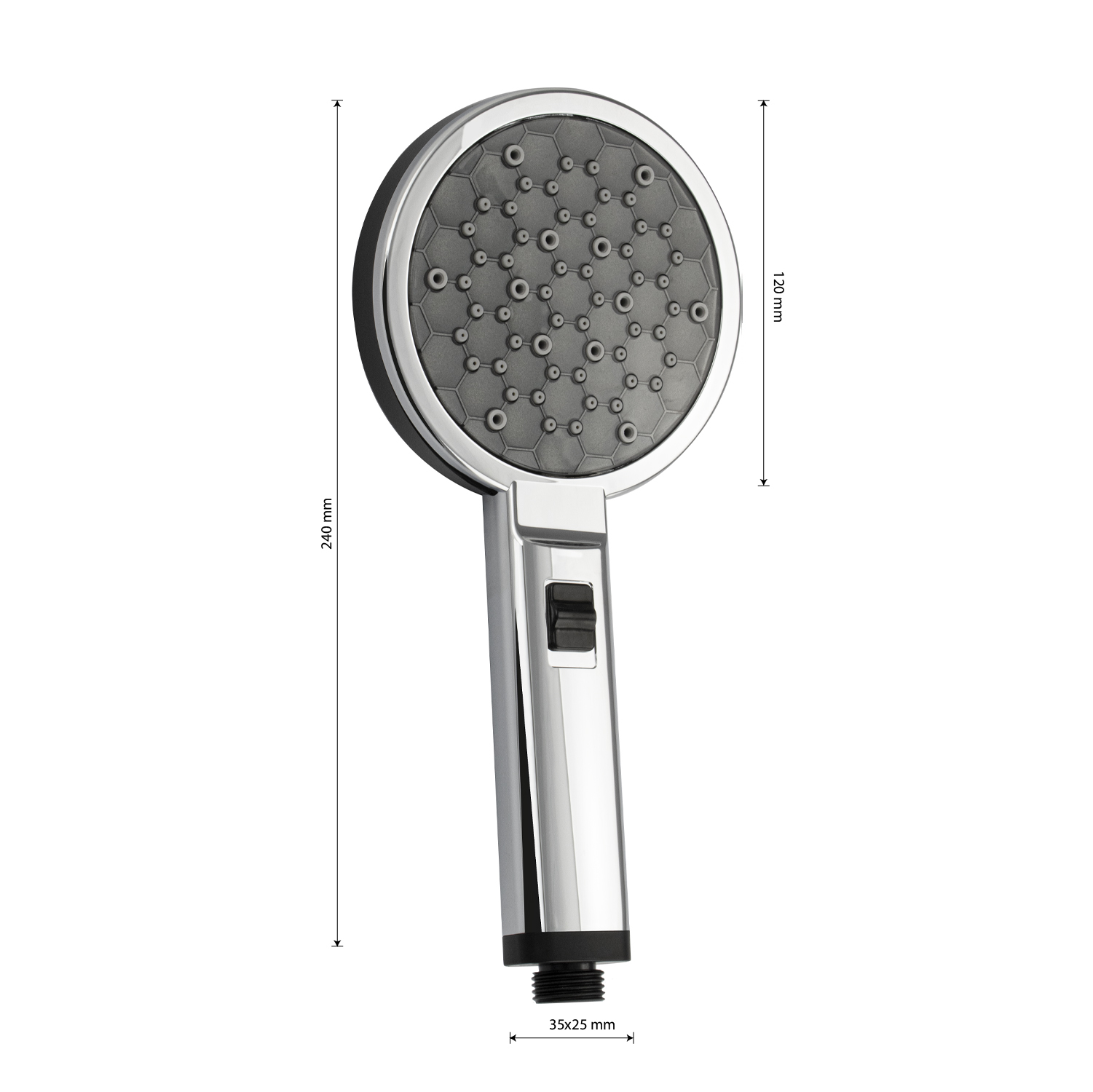 Душевая лейка круглая с 3Д эффектом, отличается современным технологичным дизайном, высокой надежностью, долговечностью. Она изготовлена из влагостойкого пластика АБС и имеет декоративное покрытие цвета «хром», придающее устройству привлекательный вид и предохраняющее от агрессивного воздействия окружающей среды. Корпус отличается небольшим весом, что исключает повреждение напольной плитки или эмали ванны при случайном падении. Работает в двух режимах с регулируемой интенсивностью: дождевая, обычная. Ухаживать за душевой лейкой легко. Глянцевую поверхность достаточно протереть мягкой салфеткой, она в течение долгого времени не потеряет своего блеска. Система помогает мгновенно очистить силиконовые форсунки душевой лейки от известкового налета и загрязнения. Габаритные размеры: высота 240 мм, диаметр 120 мм, ширина корпуса 35 мм. Вес - 0,350 кг, объём - 0,00195 м3.