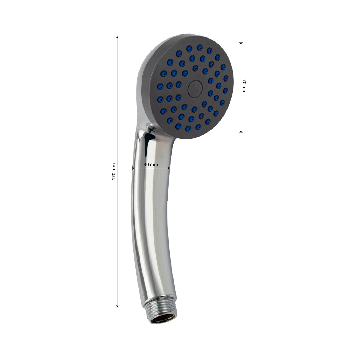 Душевая лейка отличается современным технологичным дизайном, высокой надежностью, долговечностью. Она изготовлена из влагостойкого пластика АБС и имеет декоративное покрытие цвета «хром», придающее устройству привлекательный вид и предохраняющее от агрессивного воздействия окружающей среды. Корпус отличается небольшим весом, что исключает повреждение напольной плитки или эмали ванны при случайном падении. Ухаживать за душевой лейкой легко. Глянцевую поверхность достаточно протереть мягкой салфеткой, она в течение долгого времени не потеряет своего блеска. Система помогает мгновенно очистить силиконовые форсунки душевой лейки от известкового налета и загрязнения. Габаритные размеры: высота 170 мм, диаметр лейки 70 мм, диаметр корпуса 30 мм. Вес - 0,100 кг, объём - 0,00080 м3.