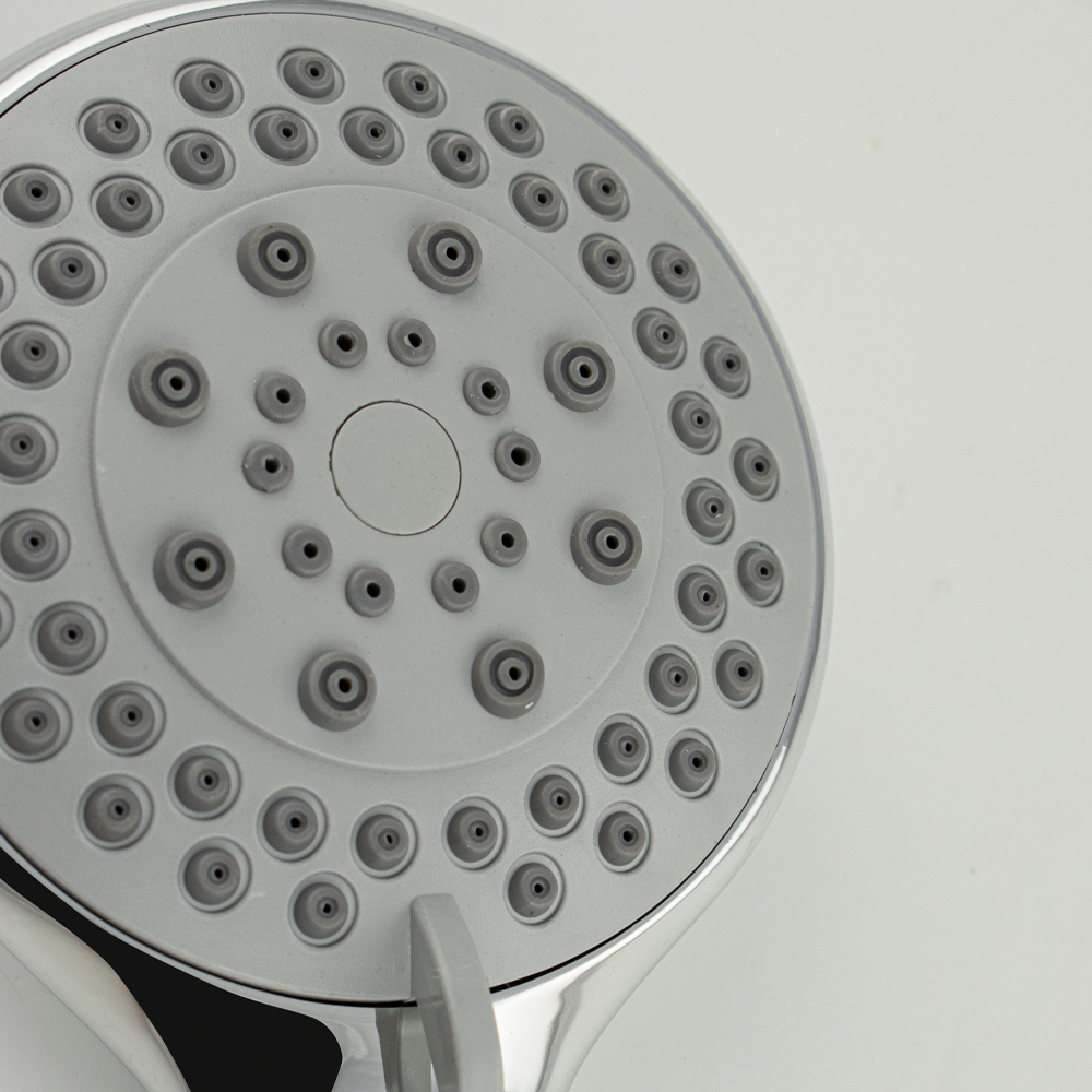 Душевая лейка отличается современным технологичным дизайном, высокой надежностью, долговечностью. Она изготовлена из влагостойкого пластика АБС и имеет декоративное покрытие цвета «хром», придающее устройству привлекательный вид и предохраняющее от агрессивного воздействия окружающей среды. Корпус отличается небольшим весом, что исключает повреждение напольной плитки или эмали ванны при случайном падении. Работает в пяти режимах с регулируемой интенсивностью. Ухаживать за душевой лейкой легко. Глянцевую поверхность достаточно протереть мягкой салфеткой, она в течение долгого времени не потеряет своего блеска. Система помогает мгновенно очистить силиконовые форсунки душевой лейки от известкового налета и загрязнения. Габаритные размеры: высота 225 мм, диаметр лейки 100 мм. Вес - 0,18 кг, объём - 0,00278 м3.