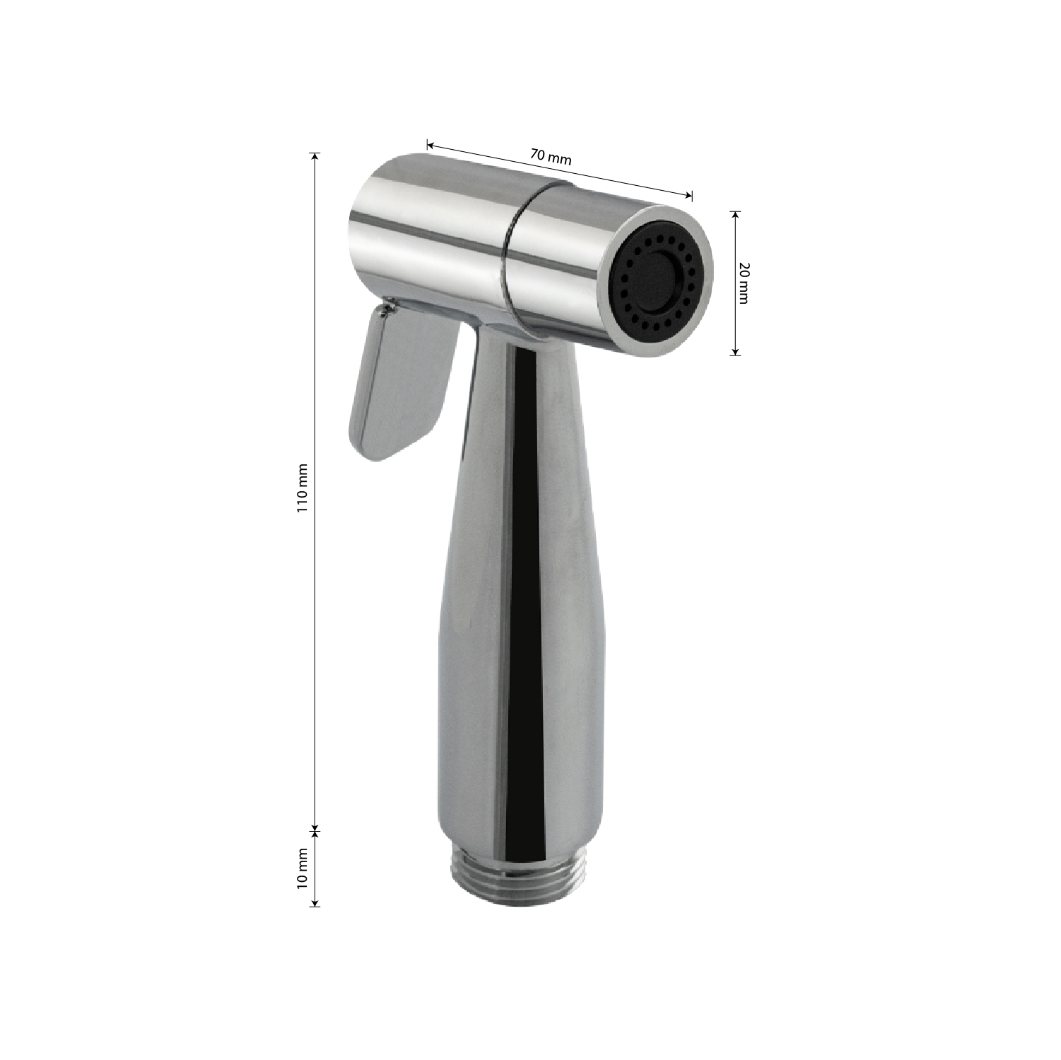 Гигиенический душ, металический, хромированный, от торговой марки GFmark – удобное и безопасное устройство для проведения гигиенических процедур. Корпус лейки с классическим аэратором. Лейка изготовлена из прочного материала, обеспечивающего великолепные эксплуатационные свойства изделия. Подача воды осуществляется нажатием клавиши управления. Хромированное покрытие придает модели изящный внешний вид и позволяет легко вписать в современный интерьер ванной и туалетной комнаты. Габаритные размеры: высота лейки 110 мм, ширина лейки 70 мм, диаметр лейки 70 мм. Вес - 0,195 кг, объём - 0,0006 м3.