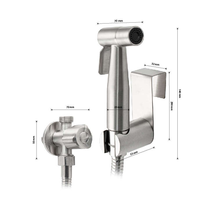 Гигиенический душ, из нержавеющей стали, матовый, от торговой марки GFmark – удобное и безопасное устройство для проведения гигиенических процедур. Корпус лейки с классическим аэратором. Лейка изготовлена из прочного материала, обеспечивающего великолепные эксплуатационные свойства изделия. Подача воды осуществляется нажатием клавиши управления. Матовое покрытие придает модели изящный внешний вид и позволяет легко вписать в современный интерьер ванной и туалетной комнаты. Угловой кран с двойным подключением металлокерамика 1/2 х 1/2, позволяет подключение другого потребителя. В комплекте имеется дополнительное крепление к унитазу. Габаритные размеры: высота лейки 140 мм,ширина лейки 70 мм, длина шланга120 см, ширина шарового крана 70 мм, высота крана 50 мм, диаметр посадочного седла 50 мм. Вес - 0,750 кг, объём - 0,00355 м3. В комплекте лейка, шланг, угловой двойной кран м/к 1/2 х 1/2, кронштейн, крепления к унитазу.