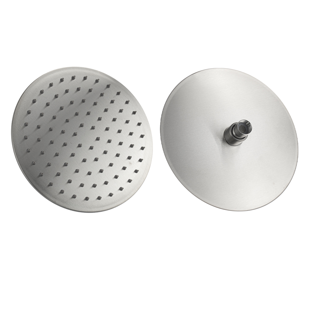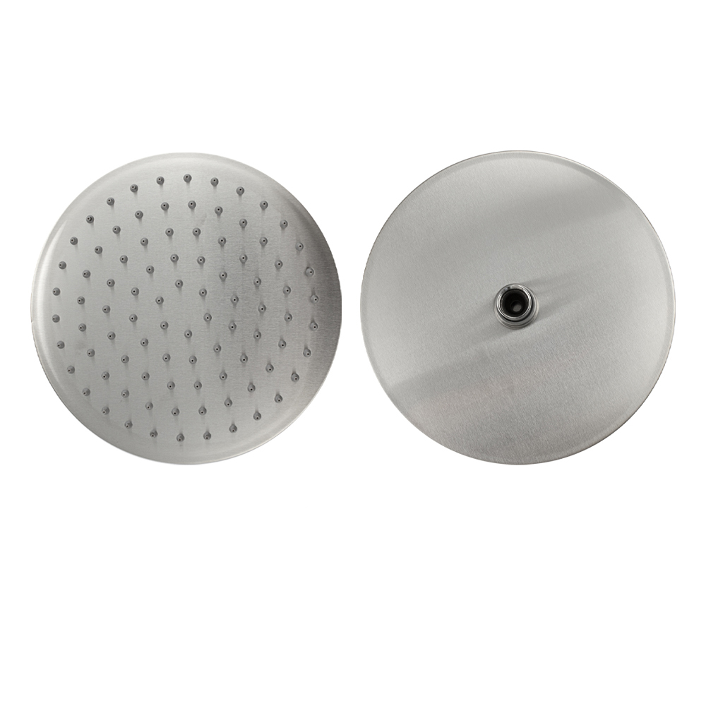 Душевая лейка тропический душ круглая, отличается современным технологичным дизайном, высокой надежностью, долговечностью. Она изготовлена из нержавеющей стали марки SUS 304 и имеет декоративное матовое покрытие, придающее устройству привлекательный вид и предохраняющее от агрессивного воздействия окружающей среды. Корпус отличается небольшим весом, что исключает повреждение напольной плитки или эмали ванны при случайном падении. Лейка крепится к штанге при помощи шарнирного соединителя, внутрь которого встроен сетчатый аэратор для равномерного распределения воды. Также шарнирный соединитель позволяет менять угол наклона душевой насадки от 0° до 22°. Конструкция душа создает эффект тропического ливня, делая водные процедуры приятными и комфортными. Ухаживать за душевой лейкой легко. Глянцевую поверхность достаточно протереть мягкой салфеткой, она в течение долгого времени не потеряет своего блеска. Система помогает мгновенно очистить силиконовые форсунки душевой лейки от известкового налета и загрязнения. Габ