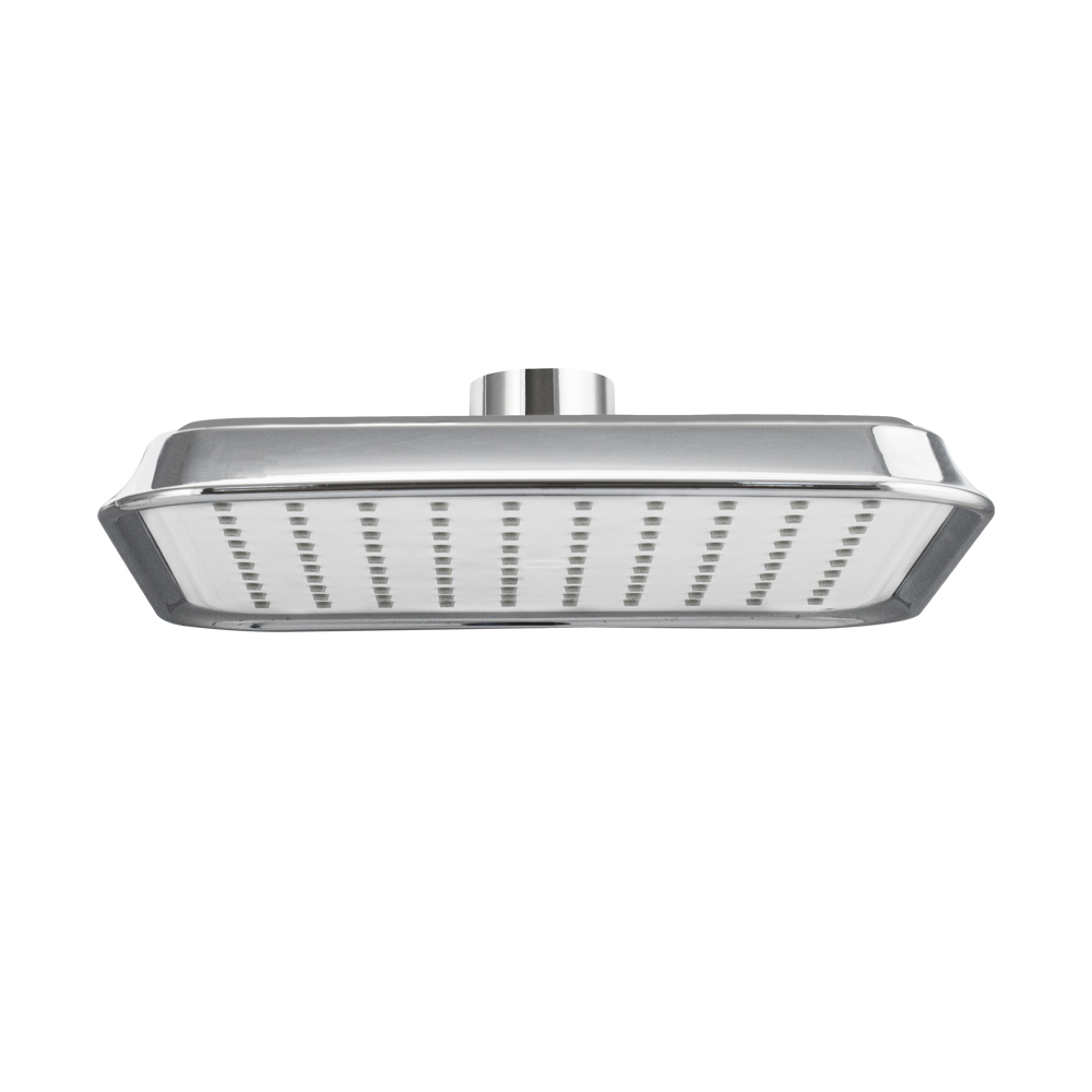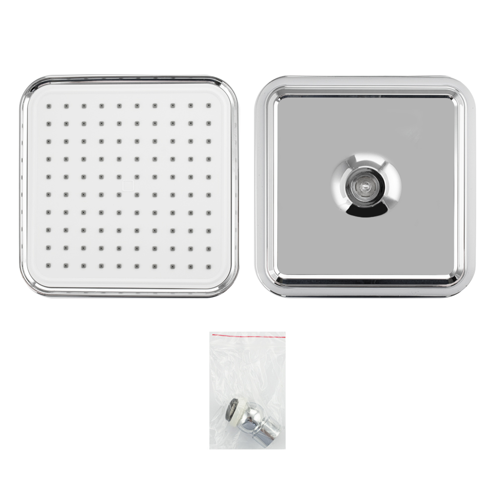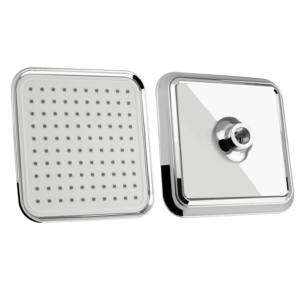 Душевая лейка тропический душ квадратная с белой вставкой, отличается современным технологичным дизайном, высокой надежностью, долговечностью. Она изготовлена из влагостойкого пластика АБС и имеет декоративное покрытие цвета «хром», придающее устройству привлекательный вид и предохраняющее от агрессивного воздействия окружающей среды. Корпус отличается небольшим весом, что исключает повреждение напольной плитки или эмали ванны при случайном падении. Лейка крепится к штанге при помощи шарнирного соединителя, внутрь которого встроен сетчатый аэратор для равномерного распределения воды. Также шарнирный соединитель позволяет менять угол наклона душевой насадки от 0° до 22°. Конструкция душа создает эффект тропического ливня, делая водные процедуры приятными и комфортными. Ухаживать за душевой лейкой легко. Глянцевую поверхность достаточно протереть мягкой салфеткой, она в течение долгого времени не потеряет своего блеска. Система помогает мгновенно очистить силиконовые форсунки душевой лейки от известкового налет