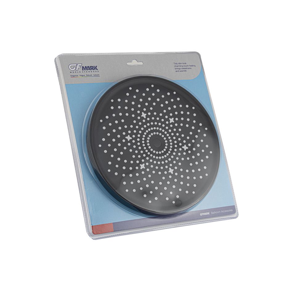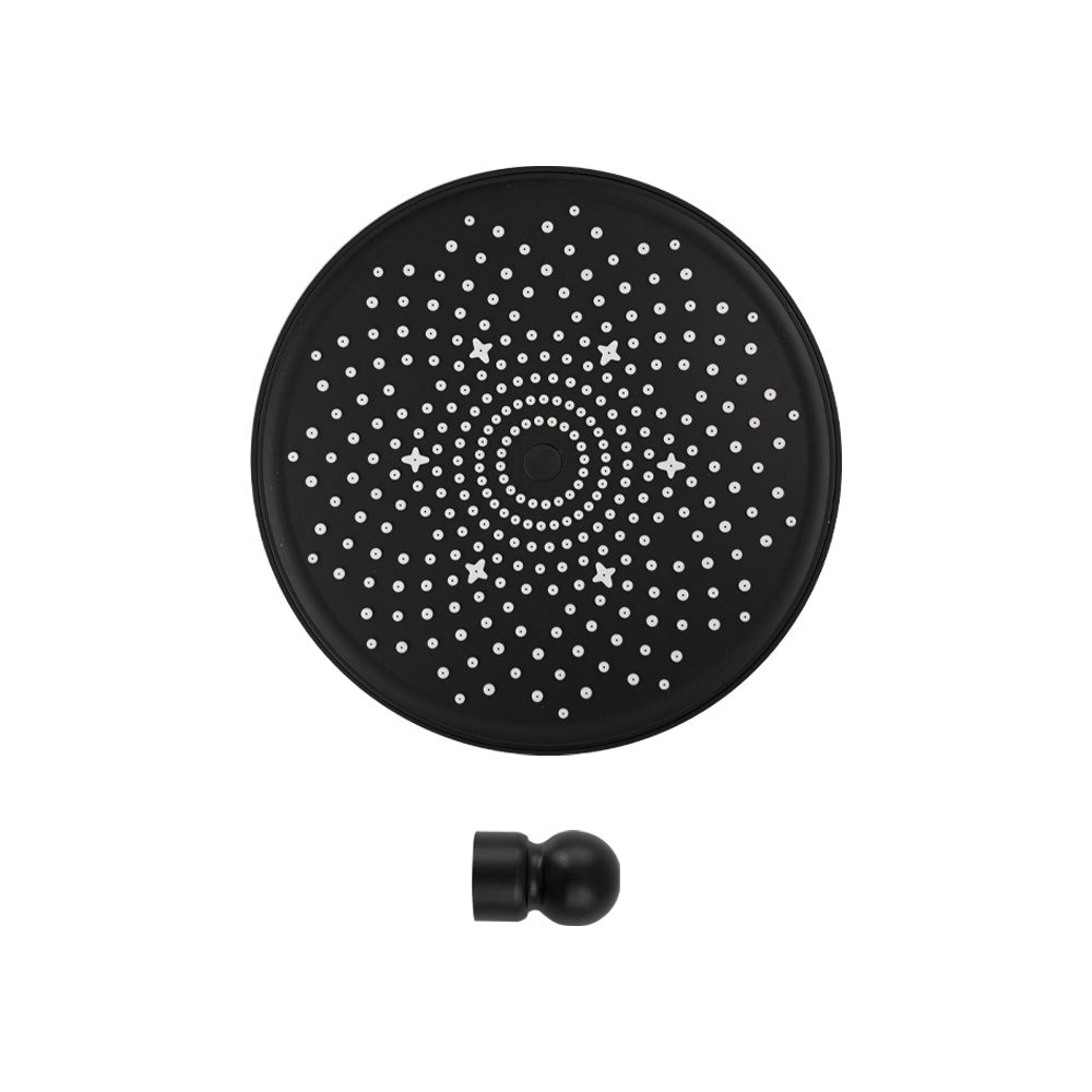 Душевая лейка тропический душ круглая, отличается современным технологичным дизайном, высокой надежностью, долговечностью. Она изготовлена из влагостойкого пластика АБС черного цвета, придающее устройству привлекательный вид и предохраняющее от агрессивного воздействия окружающей среды. Корпус отличается небольшим весом, что исключает повреждение напольной плитки или эмали ванны при случайном падении. Лейка крепится к штанге при помощи шарнирного соединителя, внутрь которого встроен сетчатый аэратор для равномерного распределения воды. Также шарнирный соединитель позволяет менять угол наклона душевой насадки от 0° до 22°. Конструкция душа создает эффект тропического ливня, делая водные процедуры приятными и комфортными. Ухаживать за душевой лейкой легко.Поверхность достаточно протереть мягкой салфеткой, она в течение долгого времени не потеряет своего привлекательного внешнего вида. Система помогает мгновенно очистить силиконовые форсунки душевой лейки от известкового налета и загрязнения. Габаритные размеры: