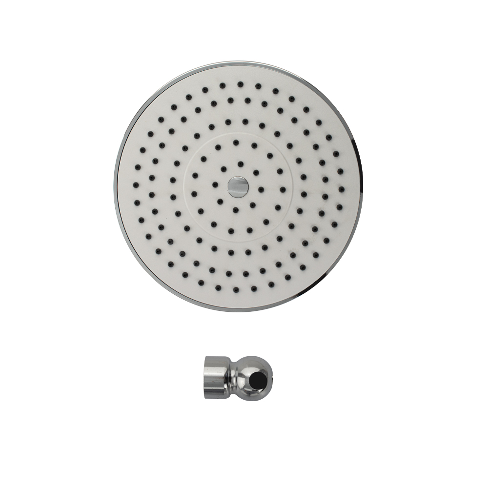 Душевая лейка тропический душ круглая, отличается современным технологичным дизайном, высокой надежностью, долговечностью. Она изготовлена из влагостойкого пластика АБС и имеет декоративную вставку белого цвета с хромированным корпусом, придающее устройству привлекательный вид и предохраняющее от агрессивного воздействия окружающей среды. Корпус отличается небольшим весом, что исключает повреждение напольной плитки или эмали ванны при случайном падении. Лейка крепится к штанге при помощи шарнирного соединителя, внутрь которого встроен сетчатый аэратор для равномерного распределения воды. Также шарнирный соединитель позволяет менять угол наклона душевой насадки от 0° до 22°. Конструкция душа создает эффект тропического ливня, делая водные процедуры приятными и комфортными. Ухаживать за душевой лейкой легко.Поверхность достаточно протереть мягкой салфеткой, она в течение долгого времени не потеряет своего блеска. Система помогает мгновенно очистить силиконовые форсунки душевой лейки от известкового налета и заг
