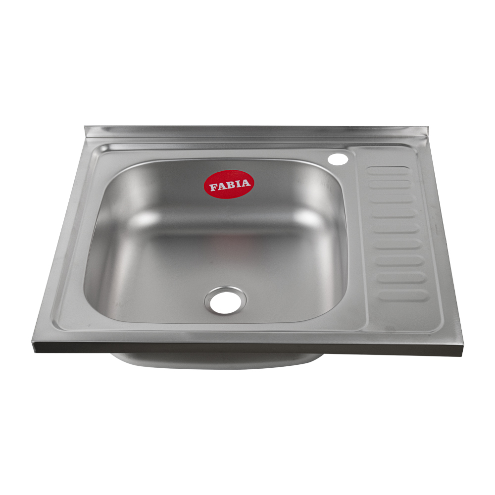 Накладная мойка FABIA из нержавеющей стали отличный вариант для кухни в стиле «эконом», она прослужит многие годы. Классическая форма и матовый цвет «хром» гармонично впишутся в любой интерьер и никогда не выйдут из моды. Оптимальный размер с площадкой для посуды позволяет свободно мыть посуду, без страха её разбить. Мойка устанавливается на тумбочку. Практичная площадка, расположенная по центру, даёт возможность вмонтировать любую понравившуюся модель смесителя. Габаритные размеры: ширина 600 мм, длина 500 мм, глубина 160 мм, толщина стали 0,4 мм. Вес - 1,500 кг, объём - 0,01225 м3.