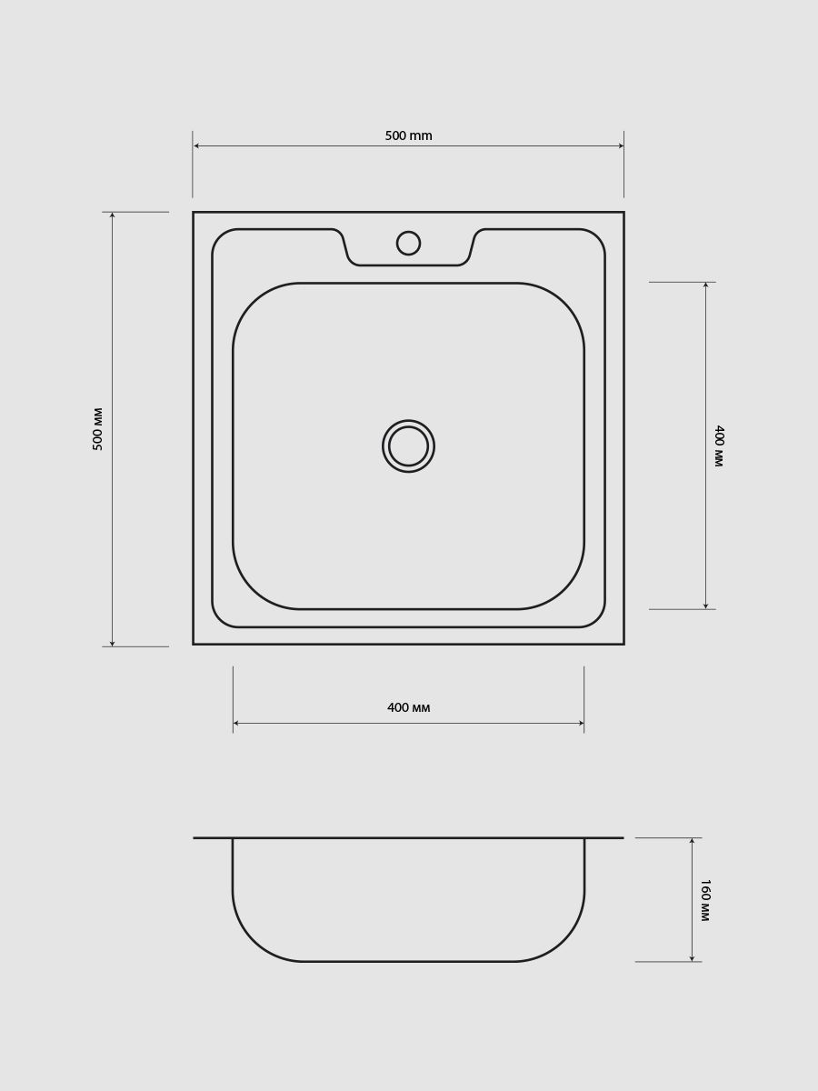 Накладная мойка FABIA из нержавеющей стали отличный вариант для кухни, она прослужит многие годы. Классическая форма и хромированный цвет гармонично впишутся в любой интерьер и никогда не выйдут из моды. Оптимальный размер позволяет свободно мыть посуду, без страха её разбить. Мойка устанавливается на тумбочку. Практичная площадка, расположенная по центру, даёт возможность вмонтировать любую понравившуюся модель смесителя. В комплекте сифон с большой горловиной с переливом. Габаритные размеры: ширина 500 мм, длина 500 мм, глубина 160 мм, толщина стали 0,6 мм. Вес - 2,200 кг, объём - 0,01352 м3.