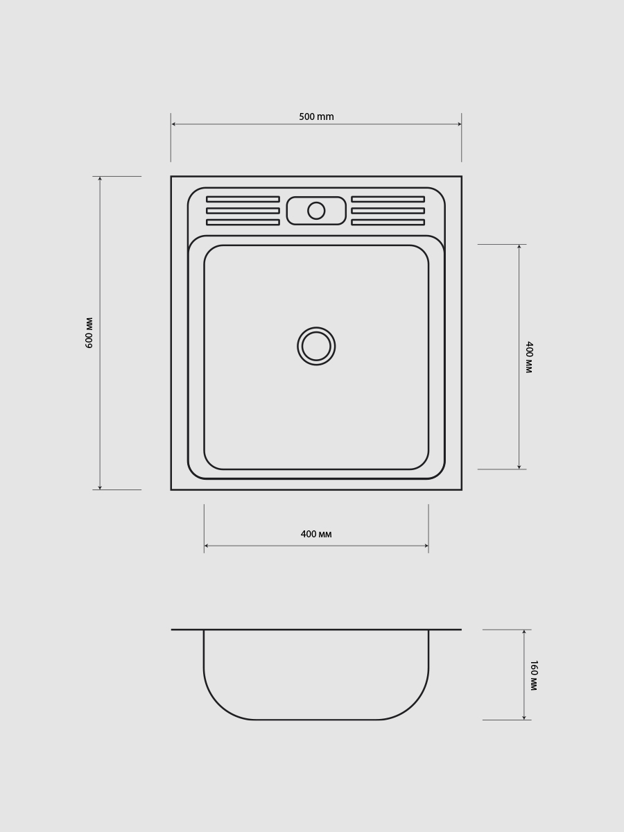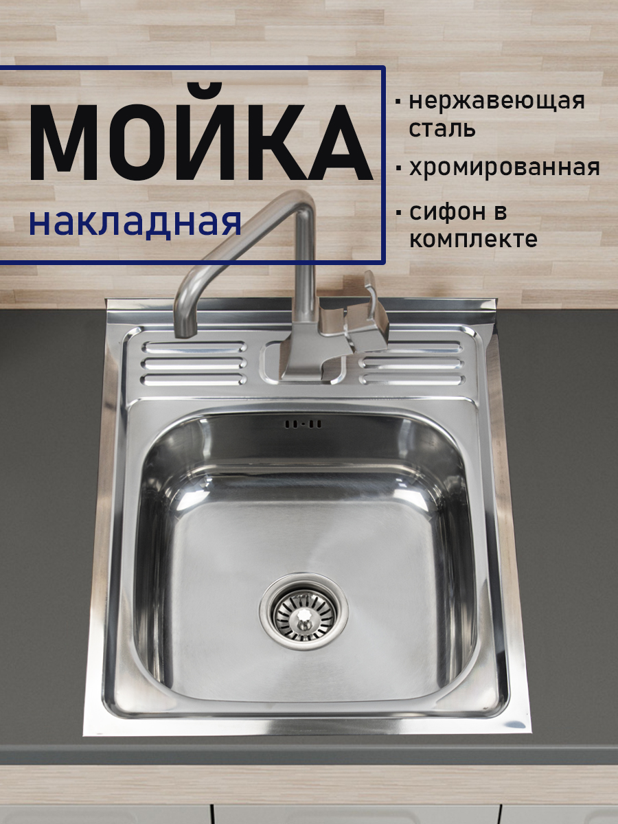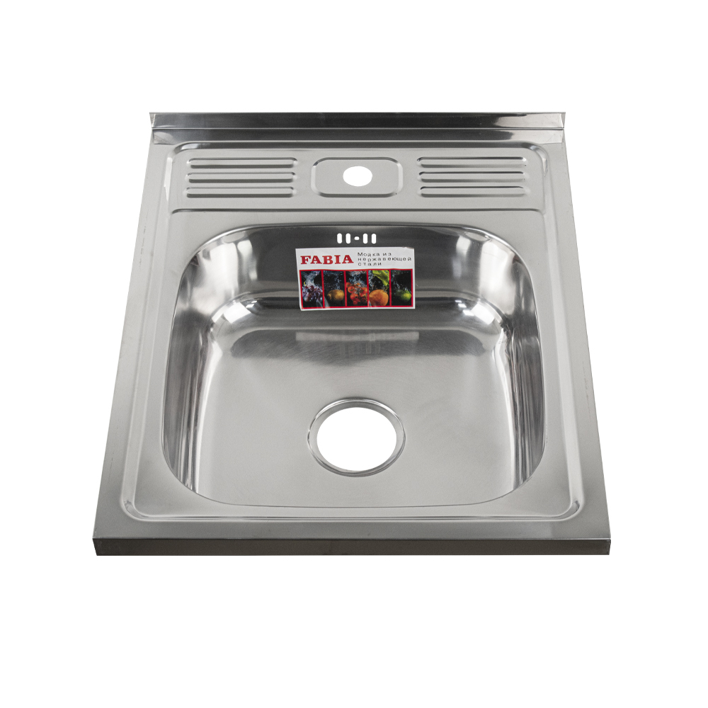Накладная мойка FABIA из нержавеющей стали отличный вариант для кухни, она прослужит многие годы. Классическая форма и хромированный цвет гармонично впишутся в любой интерьер и никогда не выйдут из моды. Оптимальный размер позволяет свободно мыть посуду, без страха её разбить. Мойка устанавливается на тумбочку. Практичная площадка, расположенная по центру, даёт возможность вмонтировать любую понравившуюся модель смесителя. В комплекте сифон с большой горловиной с переливом. Габаритные размеры: ширина 500 мм, длина 600 мм, глубина 160 мм, толщина стали 0,6 мм. Вес - 2,400 кг, объём - 0,01676 м3.