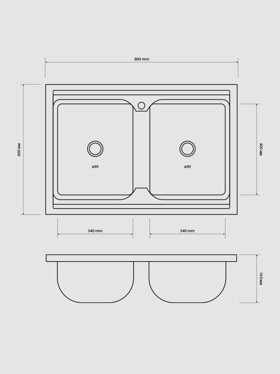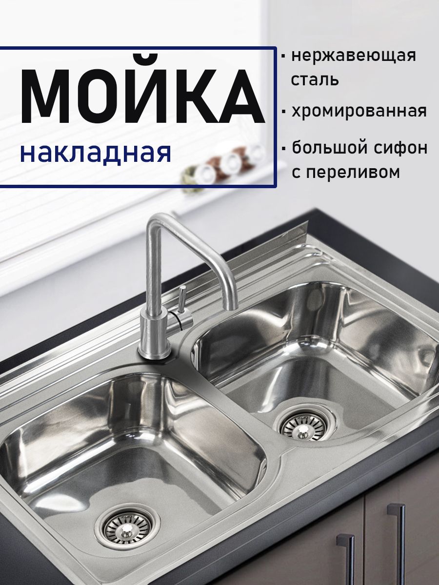 Накладная мойка FABIA с двумя чашами из нержавеющей стали отличный вариант для кухни, она прослужит многие годы. Классическая форма и хромированный цвет гармонично впишутся в любой интерьер и никогда не выйдут из моды. Оптимальный размер позволяет свободно мыть посуду, без страха её разбить. Мойка устанавливается на тумбочку. Практичная площадка, расположенная по центру, даёт возможность вмонтировать любую понравившуюся модель смесителя. В комплекте двойной сифон с переливом. Габаритные размеры: ширина 800 мм, длина 800 мм, глубина 160 мм, толщина стали 0,6 мм. Вес - 4,900 кг, объём - 0,03921 м3.