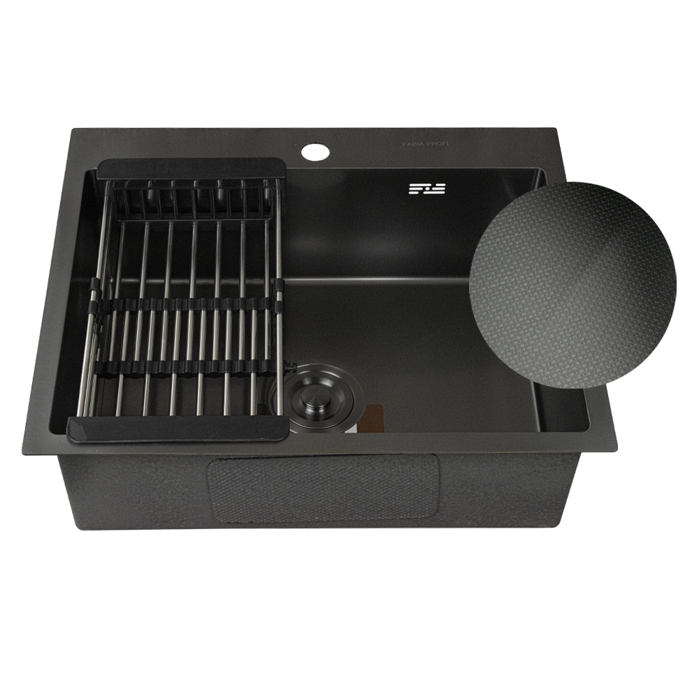 Мойка врезная, декорированная, графит, большой сифон с переливом. Сифон с углубленной горловиной, мусоросборником и крышкой. Врезная кухонная мойка произведена из премиальной нержавеющей стали AISI 304, обладает повышенной прочностью. Особенность мойки заключается в конструкции ее дна, имеющего небольшой уклон. Благодаря такой особенности, вода быстрее уходит в слив, не застаивается, что способствует поддержанию гигиеничности в чаше. Скругленные внутренние углы облегчают уход за мойкой, препятствуют скоплению частичек грязи. Тихой в использовании, мойку делает шумоизолирующее покрытие и накладки с обратной стороны мойки. В комплект входит универсальная раздвижная корзина, коврик, сифон, мойка, крепёж. Габаритные размеры: ширина 600 мм, длина 500 мм, глубина 200 мм, толщина основания 3,0 мм, чаша 0,8 мм. Вес - 8,000 кг, объём - 0,08680 м3.