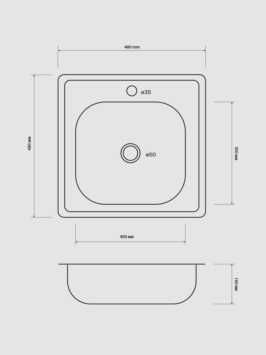 Врезная мойка FABIA из нержавеющей стали отличный вариант для кухни, она прослужит многие годы. Классическая форма и хромированный цвет гармонично впишутся в любой интерьер и никогда не выйдут из моды. Оптимальный размер позволяет свободно мыть посуду, без страха её разбить. Мойка врезается в столешницу. Специальное дополнительное антишумовое покрытие, нанесенное на обратную сторону чаш, разработано для снижения шума воды в мойке. Конструкция краев мойки, крепления и специальная уплотнительная прокладка обеспечивает максимально плотное прилегание к столешнице и защищает от протекания. Практичная площадка, расположенная по центру, даёт возможность вмонтировать любую понравившуюся модель смесителя. Габаритные размеры: ширина 480 мм, длина 480 мм, глубина 160 мм, толщина стали 0,6 мм. В комплекте гофросифон, крепёж. Вес - 1,900 кг, объём - 0,00883 м3.