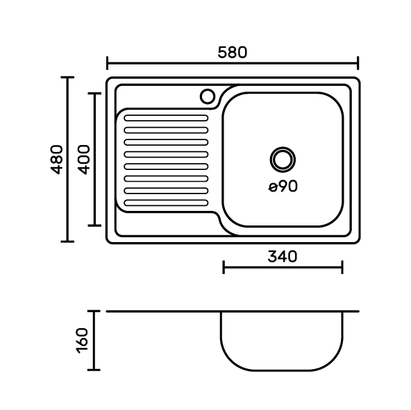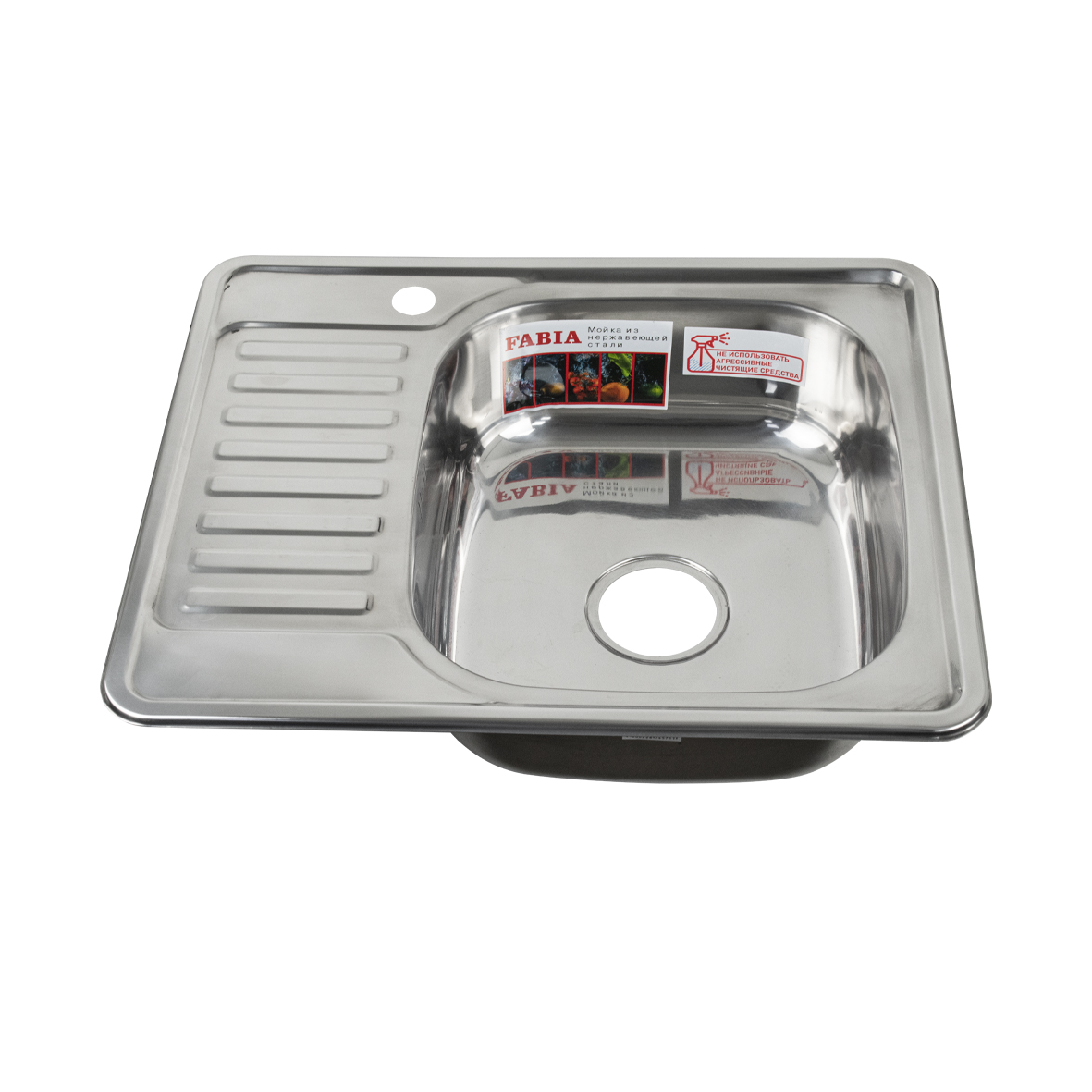 Врезная мойка FABIA из нержавеющей стали, отличный вариант для кухни, она прослужит многие годы. Классическая форма и хромированный цвет гармонично впишутся в любой интерьер и никогда не выйдут из моды. Оптимальный размер с площадкой для посуды позволяет свободно мыть посуду, без страха её разбить. Мойка врезается в столешницу. Специальное дополнительное антишумовое покрытие, нанесенное на обратную сторону чаш, разработано для снижения шума воды в мойке. Конструкция краев мойки, крепления и специальная уплотнительная прокладка обеспечивает максимально плотное прилегание к столешнице и защищает от протекания. Практичная площадка, расположенная по центру, даёт возможность вмонтировать любую понравившуюся модель смесителя. В комплекте сифон с большой горловиной с переливом, крепёж. Габаритные размеры: ширина 580 мм, длина 480 мм, глубина 160 мм, толщина стали 0,6 мм. Вес - 2.200 кг, объём - 0,0137 м3.