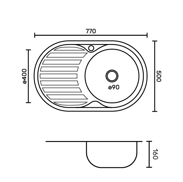 Врезная мойка FABIA из нержавеющей стали, отличный вариант для кухни, она прослужит многие годы. Классическая форма и хромированный цвет гармонично впишутся в любой интерьер и никогда не выйдут из моды. Оптимальный размер с площадкой для посуды позволяет свободно мыть посуду, без страха её разбить. Мойка врезается в столешницу. Специальное дополнительное антишумовое покрытие, нанесенное на обратную сторону чаш, разработано для снижения шума воды в мойке. Конструкция краев мойки, крепления и специальная уплотнительная прокладка обеспечивает максимально плотное прилегание к столешнице и защищает от протекания. Практичная площадка, расположенная по центру, даёт возможность вмонтировать любую понравившуюся модель смесителя. В комплекте сифон с большой горловиной с переливом, крепёж. Габаритные размеры: ширина 770 мм, длина 500 мм, глубина 160 мм, толщина стали 0,6 мм. Вес - 2.500 кг, объём - 0.022 м3.