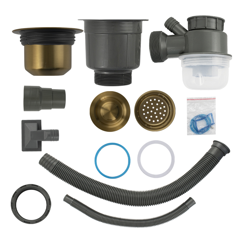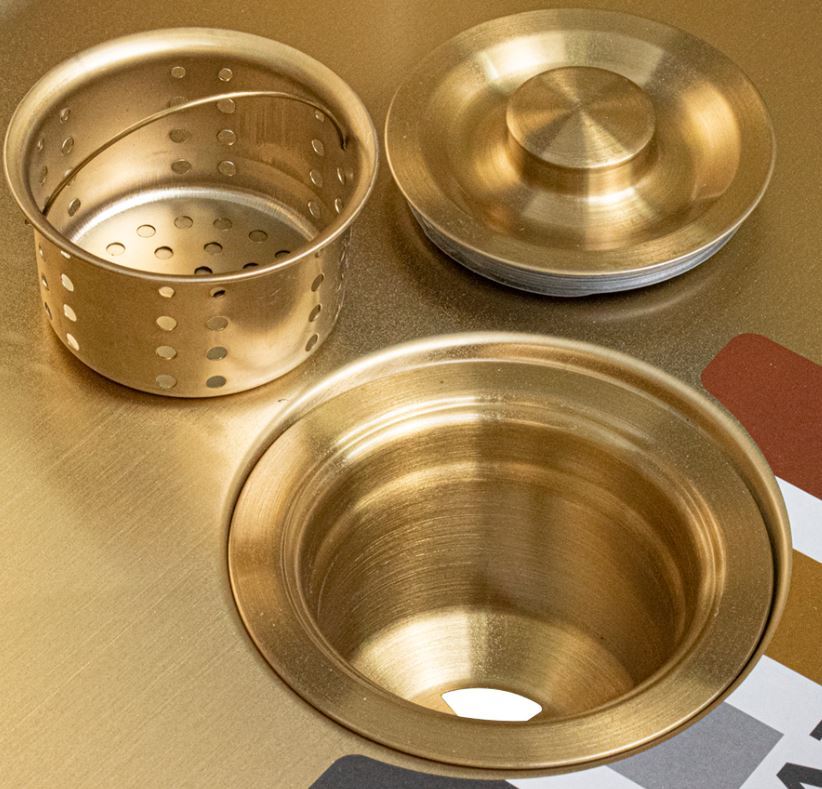 Мойка врезная 57х45 см, левая, ЗОЛОТО, толщина 0,8 мм, глубина 180 мм + большой сифон с переливом