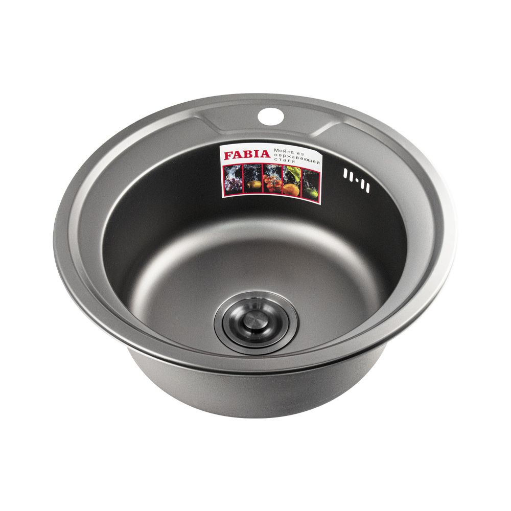 Врезная мойка FABIA из нержавеющей стали, отличный вариант для кухни, она прослужит многие годы. Классическая форма и цвет под графит гармонично впишутся в любой интерьер и никогда не выйдут из моды. Оптимальный размер позволяет свободно мыть посуду, без страха её разбить. Мойка врезается в столешницу. Специальное дополнительное антишумовое покрытие, нанесенное на обратную сторону чаш, разработано для снижения шума воды в мойке. Конструкция краев мойки, крепления и специальная уплотнительная прокладка обеспечивает максимально плотное прилегание к столешнице и защищает от протекания. Практичная площадка, расположенная по центру, даёт возможность вмонтировать любую понравившуюся модель смесителя. В комплекте сифон с большой горловиной с переливом, крепёж. Габаритные размеры: d = 490 мм, глубина 180 мм, толщина стали 0,8 мм. Вес - 2,600 кг, объём - 0,01301 м3.